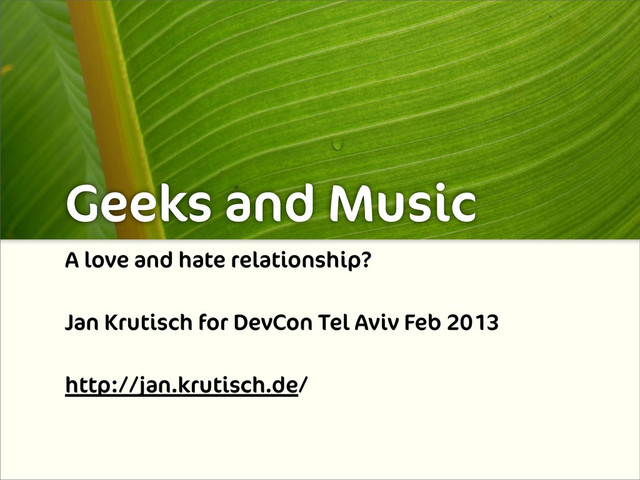 Geeks and Music A love and hate relationship? Jan Krutisch