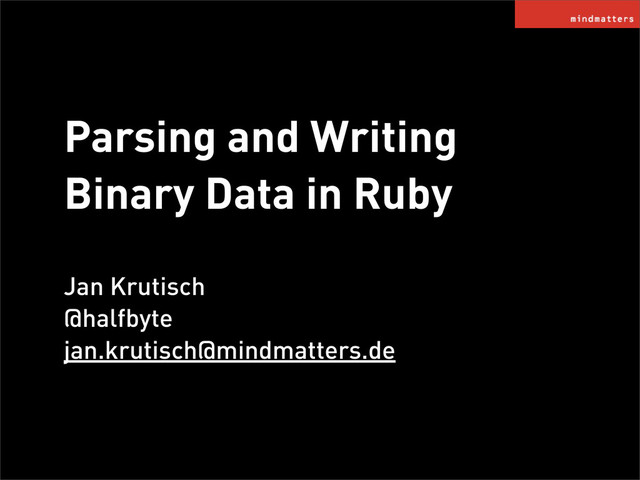 Parsing and Writing Binary Data in Ruby Jan Krutisch @halfbyte