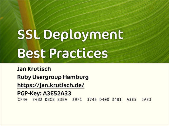 Short talk for Ruby Usergroup Hamburg 2014 about how to deploy SSL certificates while avoiding the most common pitfalls.