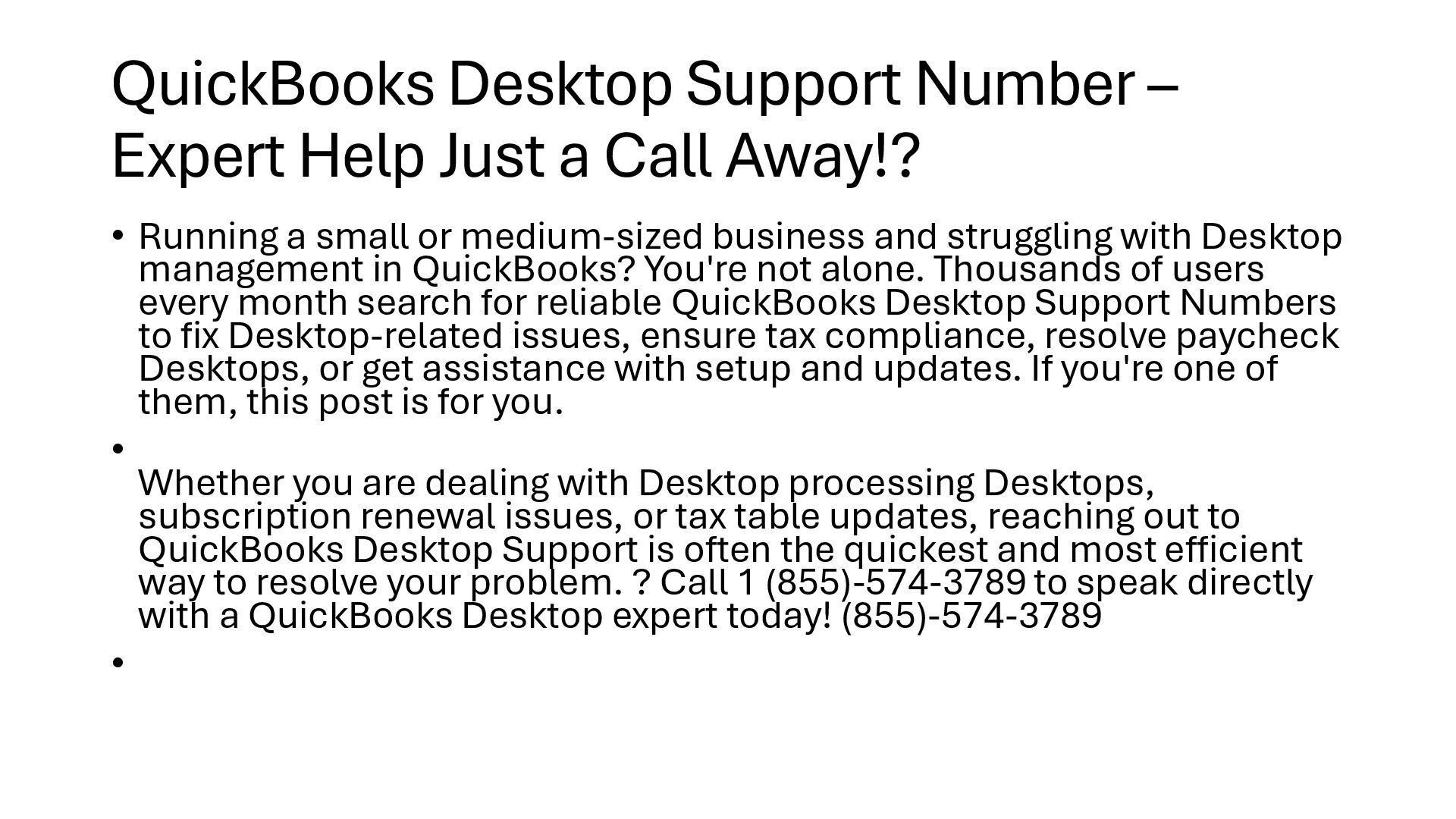 ➡❞ QuickBooks Desktop Phone Number❞, please feel free to contact our support team at ✅ (855)–574–3789 or ✅ 1–888–515–7490 . We can assist with installation, setup, and troubleshooting. 1–855–574–3789 ║★ or 1–888–515–7490