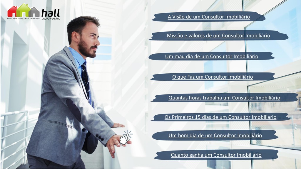 um Consultor Imobiliário Um bom dia de um Consultor Imobiliário Os Primeiros 15 dias de um Consultor Imobiliário Quanto ganha um Consultor Imobiliário Missão e valores de um Consultor Imobiliário A Visão de um Consultor Imobiliário Quantas horas trabalha um Consultor Imobiliário