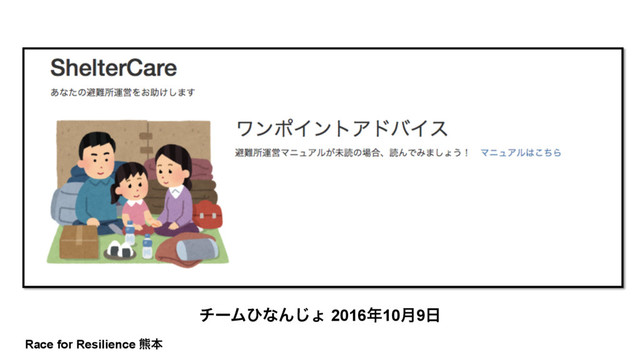 今回のシステムはRace for Resilience 熊本のハッカソンで開発しました。 チームの皆さん、ご協力ありがとうございました。 また、運営の皆様、熊本側の皆様、貴重なご意見をありがとうございました。