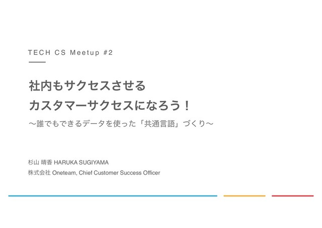 2018/11/06 TECH CS Meetup #2にて登壇した際の使用スライドです。 誰でもできるデータを使った社内の「共通言語」を作り、会社一丸でカスタマーサクセスを実行するために取り組んだこと。