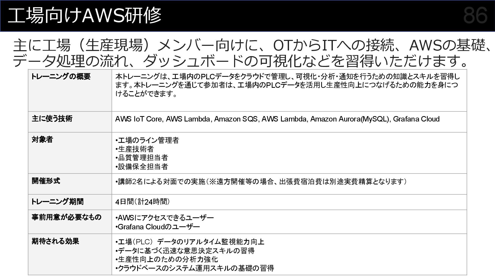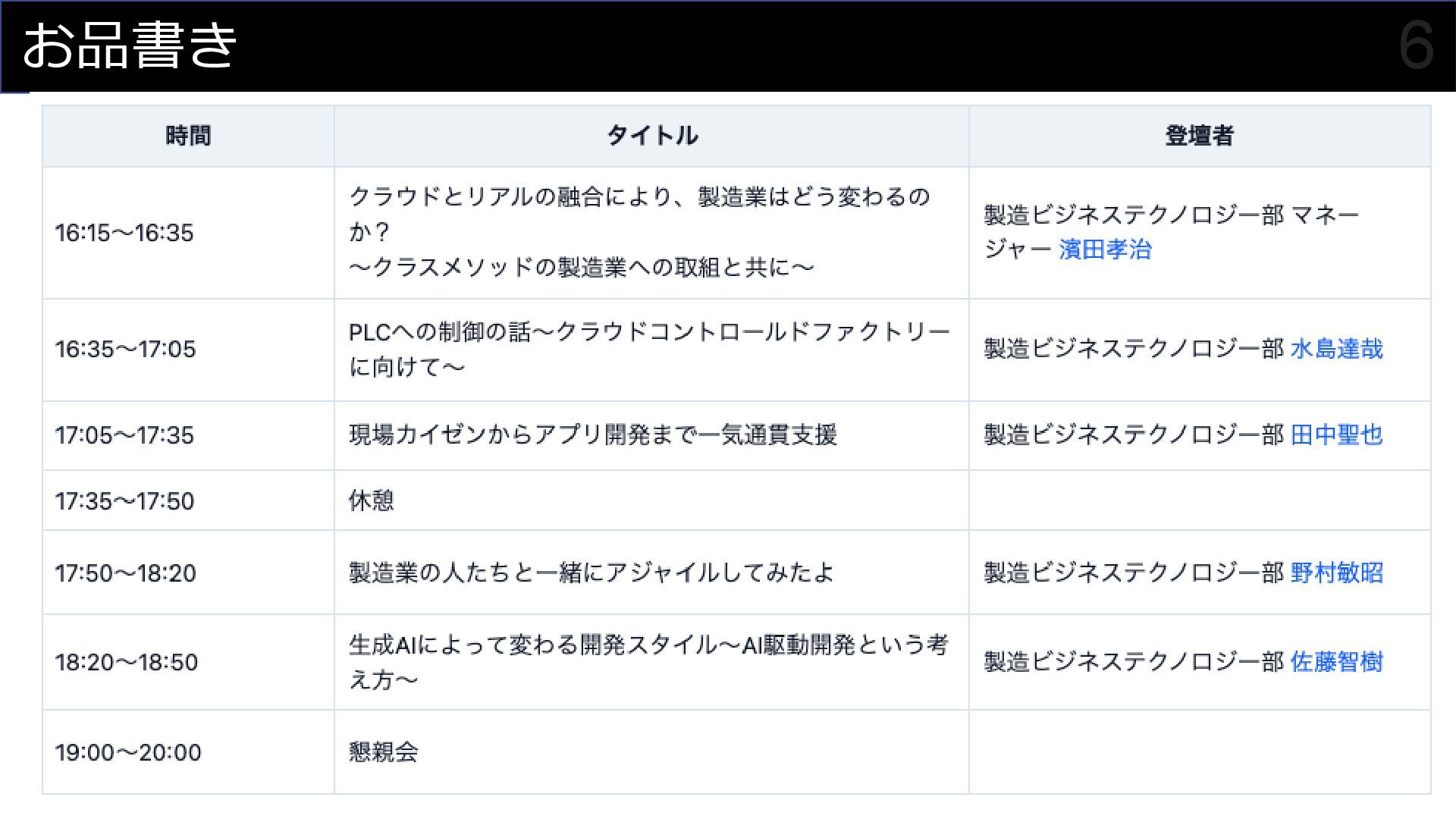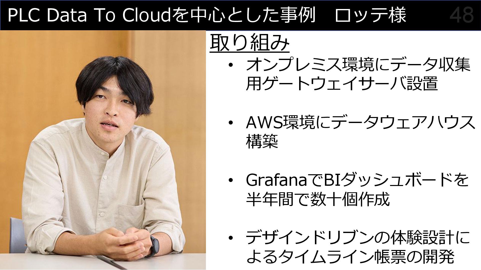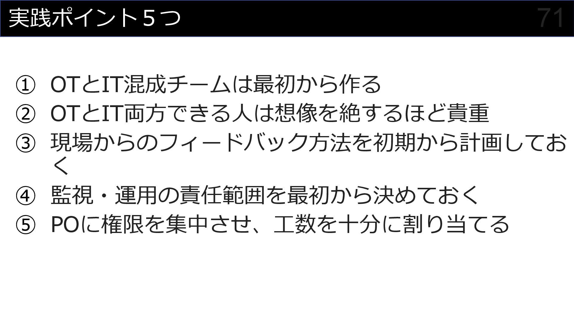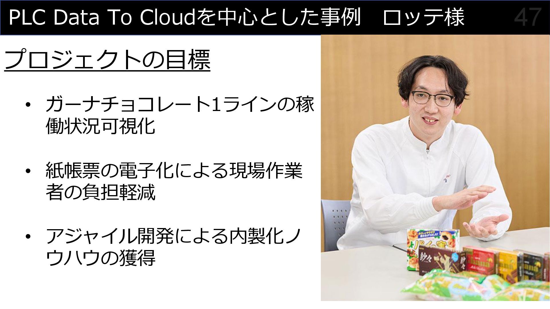 このセッションでは、私がプロジェクトマネージャーとして関わった食品製造業におけるDX事例を元に、OTメンバーとITメンバーが協調してチームを組んでプロジェクトを進めていく様子を紹介させていただくことで、DXにおけるチーム構成やコミュニケーション計画立案の参考にしていただければと思います。