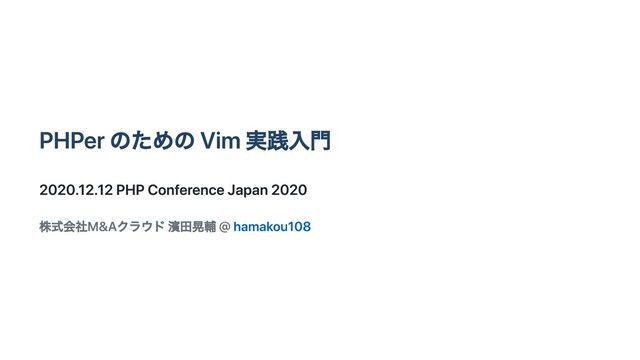 PHPer のための Vim 実践⼊⾨ 2020.12.12 PHP Conference Japan 2020 株式会社M&Aクラウド