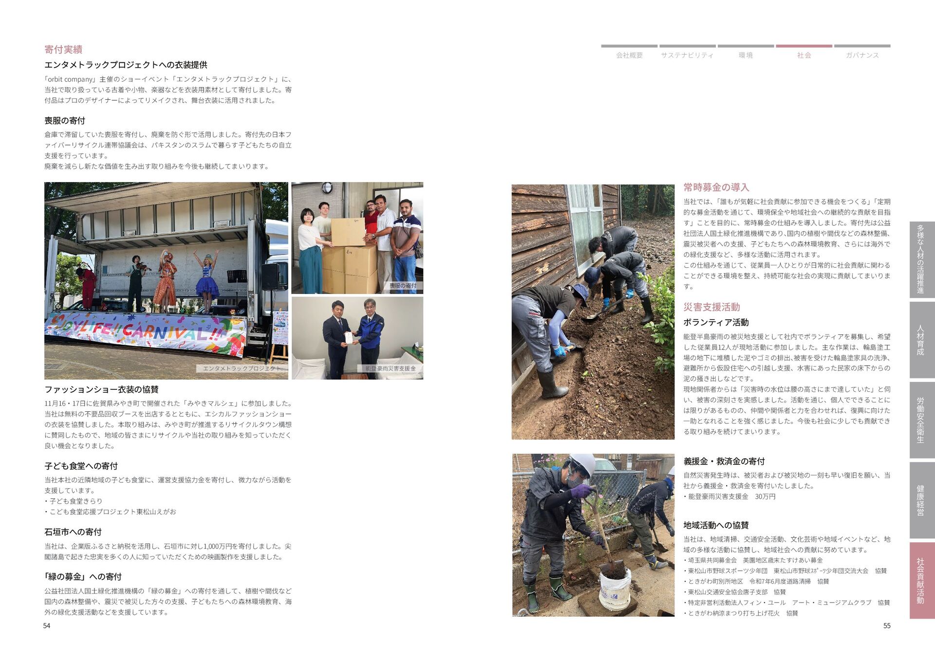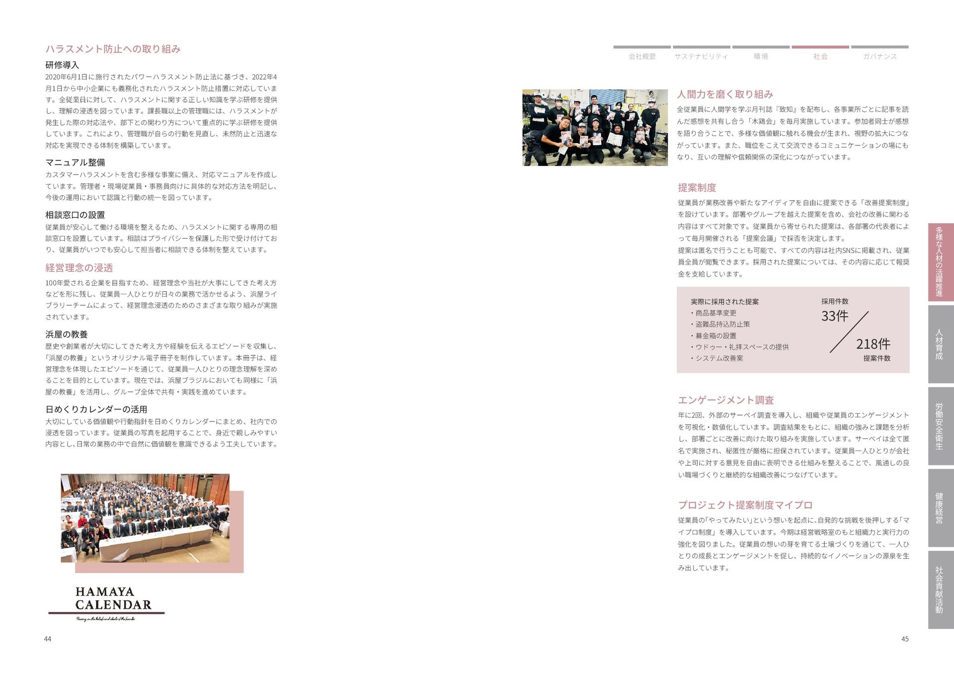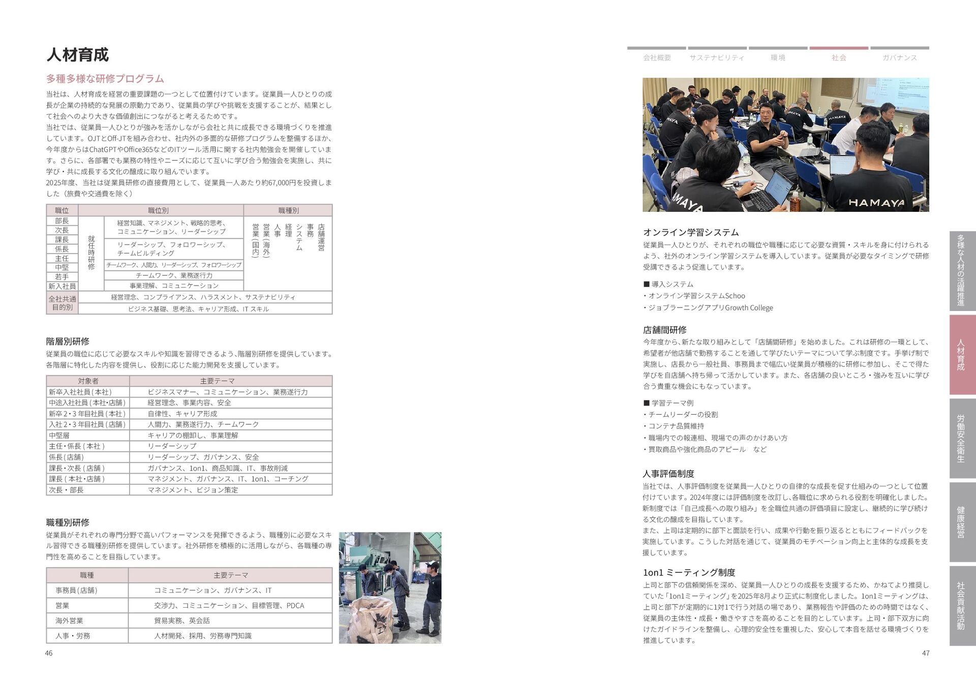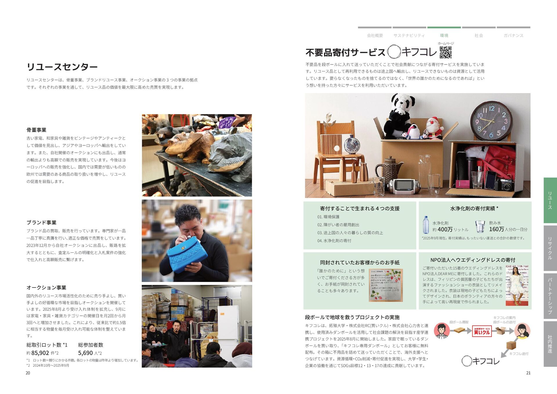 2. 選別・分解 商品ごとに選別や分解を 行い、より良い品質のリ サイクル材を提供できる ようにしています。 基板は日本へ出荷し、当 社の東日本マテリアルセ ンターの破砕機で粉砕処 理をおこない、精錬会社 へ出荷されます。 3. 出荷・再資源化 リサイクル品取扱量 526t* * 2024年10月~2025年9月 NPO法人はまや NPO法人はまやでは、2拠点の就労支援施設で、障がい者の就労訓練を 行っています。株式会社浜屋で回収されたパソコンやゲーム機などの小 型家電の分解・仕分けを障がい者に委託し、その対価を工賃としてお支 払いすることで障がい者の自立支援に繋げています。また、手分解によ る資源回収を行うことでリサイクル率の向上に繋がり、循環型社会の一 翼を担っています。 さらに、一般就労を希望される方への就労支援にも力を入れており、訓 練やサポートを通じて毎年一般企業への就職者を輩出しています。 特別支援学校における実習授業への協力 地域の特別支援学校高等部へ各学期ごとに電子機器を提供しており、 15名~20名の高校1年生が仕事を知ることを目的に分解作業を体験し ます。この取り組みは、仕事への理解を深めるだけでなく、不要にな った製品を再資源化するための一過程を実体験することで、サステナ ビリティについて考えるきっかけになっています。 また高校2,3年生に対しては当NPO法人での実習の場を提供しており、 卒業後の社会参加につながる支援を行っています。 一般企業への就職者輩出数 (参考)埼玉県平均工賃 20,287円/月(2023年4月~2024年3月) / 月* 40,560円 平均工賃 (重量計算の商品は個数1㎏あたり1個として換算) 台* 670,327 障がい者が分解した小型家電の台数 商品のお持ち込み~再資源化までの流れ 一般家庭や事業者、 行政、企業等から不 要品を受け入れま す。 2. 浜屋 お預かりした商品 の分解と仕分けを NPO はまやに委託 します。 3.NPO はまや 障がい者が商品の分 解・仕分け作業を行 います。 精錬会社や商社へ出 荷し、再資源化され ます。 4. 再資源化 1.一般家庭、事業者、 行政、企業等 *2024年4月~2025年3月 HAMAYA DO BRASIL 浜屋ブラジルは、電子機器、基板のリサイクル事業を通じて、ブラジ ル社会において埋め立て処理される廃棄物の削減と雇用創出に大きく 貢献してきました。また基板は高度な精錬技術のある日本へ出荷する ことで、高いリサイクル率の実現や日本の資源確保にも寄与していま す。 HAMAYA France 浜屋フランスでは、日本で収集した古道具や民芸品、骨董品などをフ ランスで販売しています。日本では価値が付きにくい品でも、フラン スでは人気のあるものが多々あります。蚤の市への出店やECサイトで の販売に加え、フランス国内だけでなく、ヨーロッパの近隣諸国で開 催される大型イベントにも足を運び、日本の商品をお届けしています。 32 33 リ サ イ ク ル リ ユ ー ス パ ー ト ナ ー シ ッ プ 社 内 推 進 会社概要 サステナビリティ 環境 社会 ガバナンス