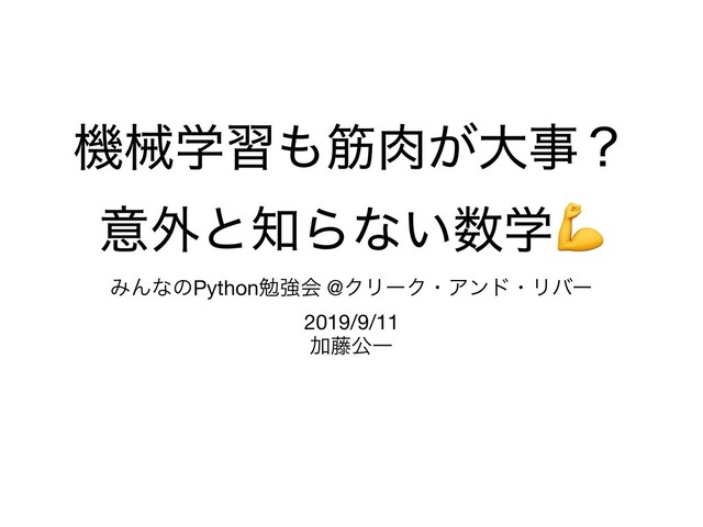 ػցֶशے͕େࣄʁ ҙ֎ͱΒͳֶ͍ ΈΜͳͷPythonษڧձ @ΫϦʔΫɾΞϯυɾϦόʔ 2019/9/11 Ճ౻ެҰ
