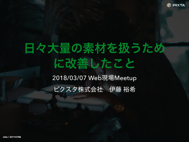ʑେྔͷૉࡐΛѻ͏ͨΊ ʹվળͨ͜͠ͱ 2018/03/07 WebݱMeetup ϐΫελגࣜձࣾɹҏ౻ ༟ر mits / 33114786