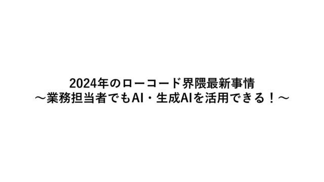 2024年のローコード界隈最新事情~業務担当者でもAI・生成AIを活用できる!~