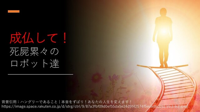 成仏して! 死屍累々の ロボット達 背景引用:ハングリーであること | 本音をずばり!あなたの人生を変えます! https://image.space.rakuten.co.jp/d/strg/ctrl/9/87a3fbf09d0ef55da5e24d9f42574f5ecadbc092.99.2.9.2.jpeg