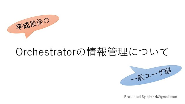 Orchestratorの情報管理について Presented By