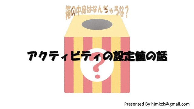 アクティビティの設定値の話 Presented By