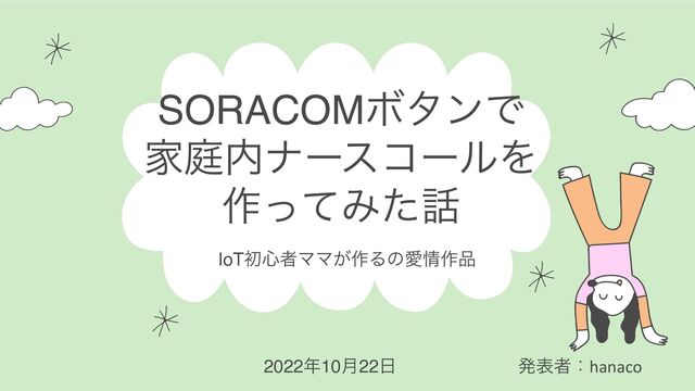 IoTॳ৺ऀϚϚ͕࡞ΔͷѪ࡞ SORACOMϘλϯͰ ՈఉφʔείʔϧΛ ࡞ͬͯΈͨ ൃදऀɿhanaco 202210݄22