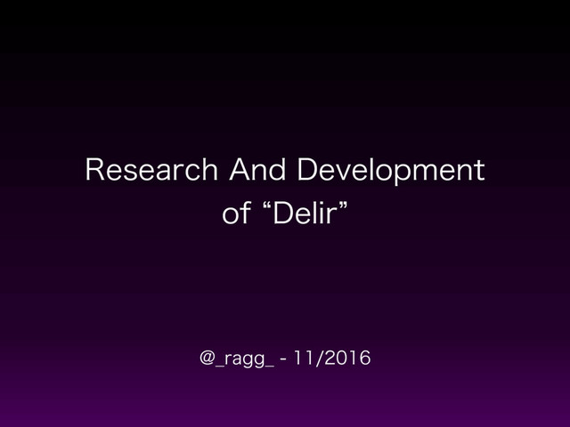 Research and Development of "Delir" at Nov, 2016