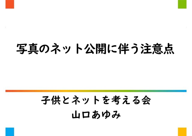 写真のネット公開に伴う注意点 子供とネットを考える会 山口あゆみ
