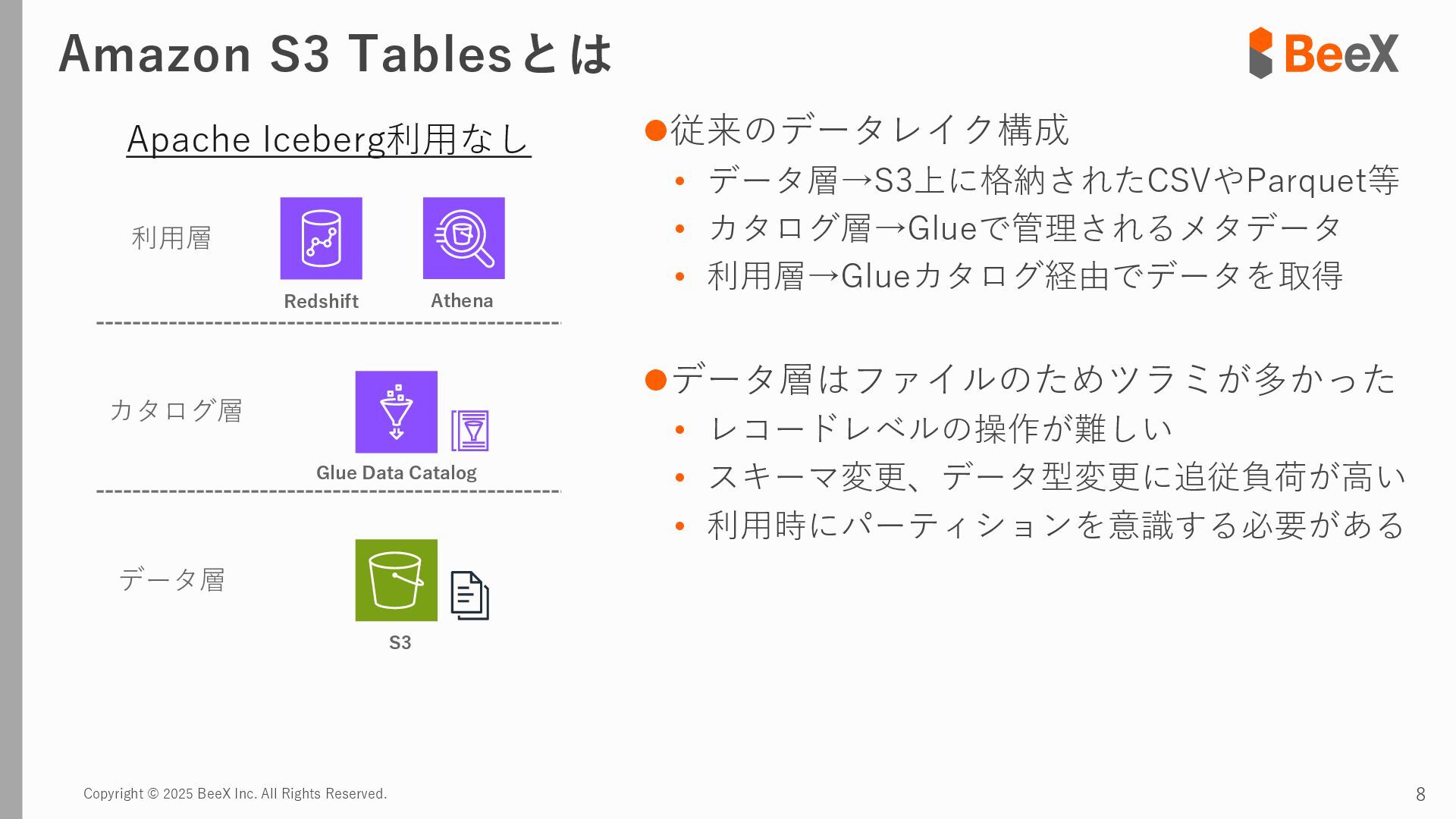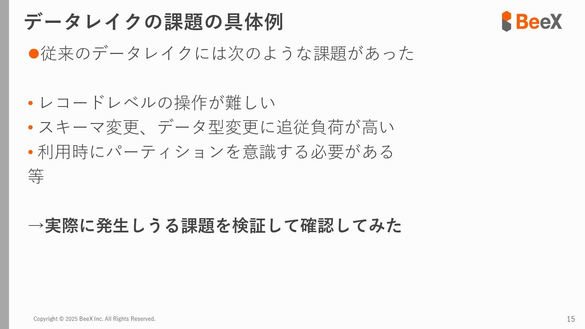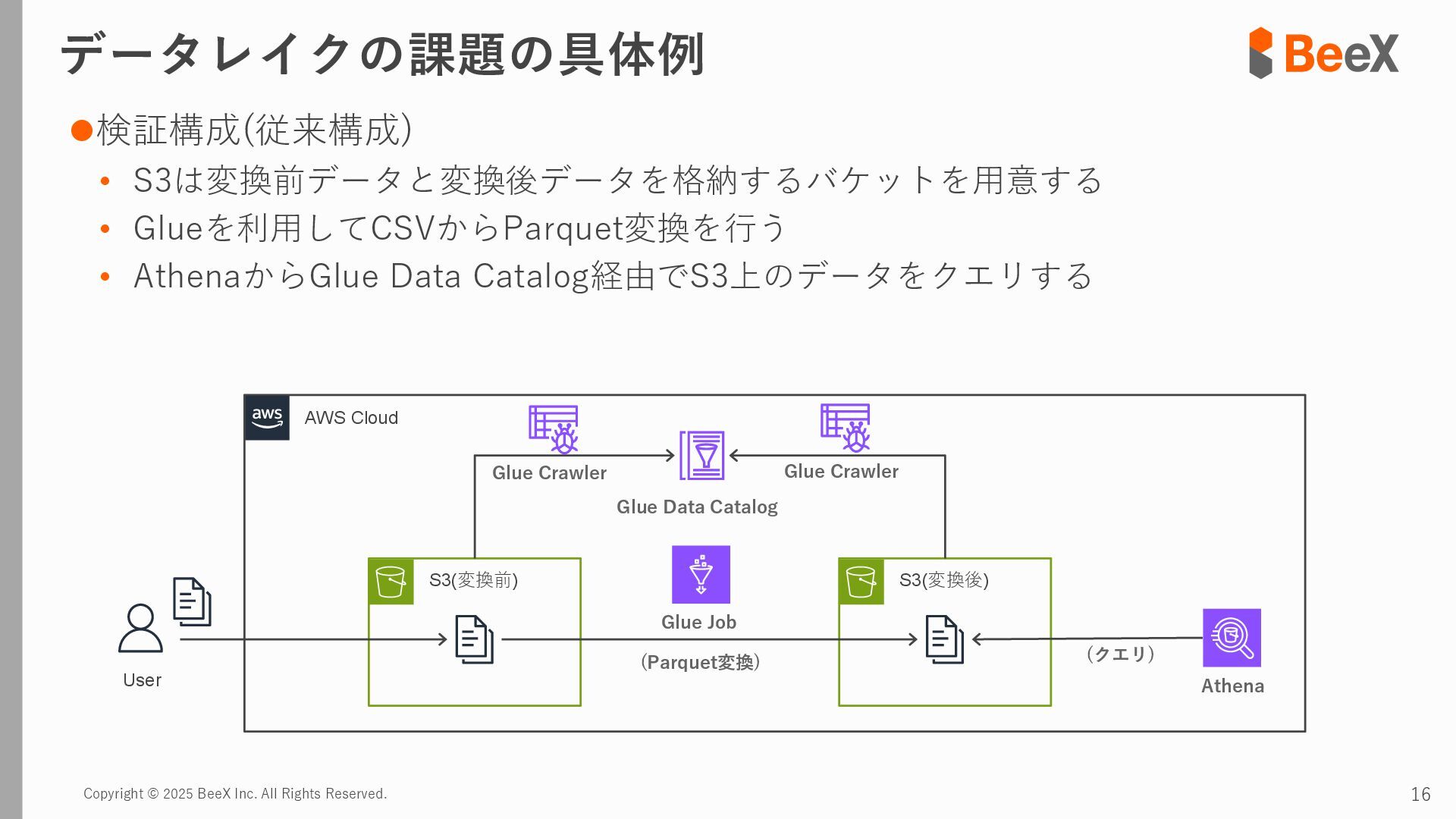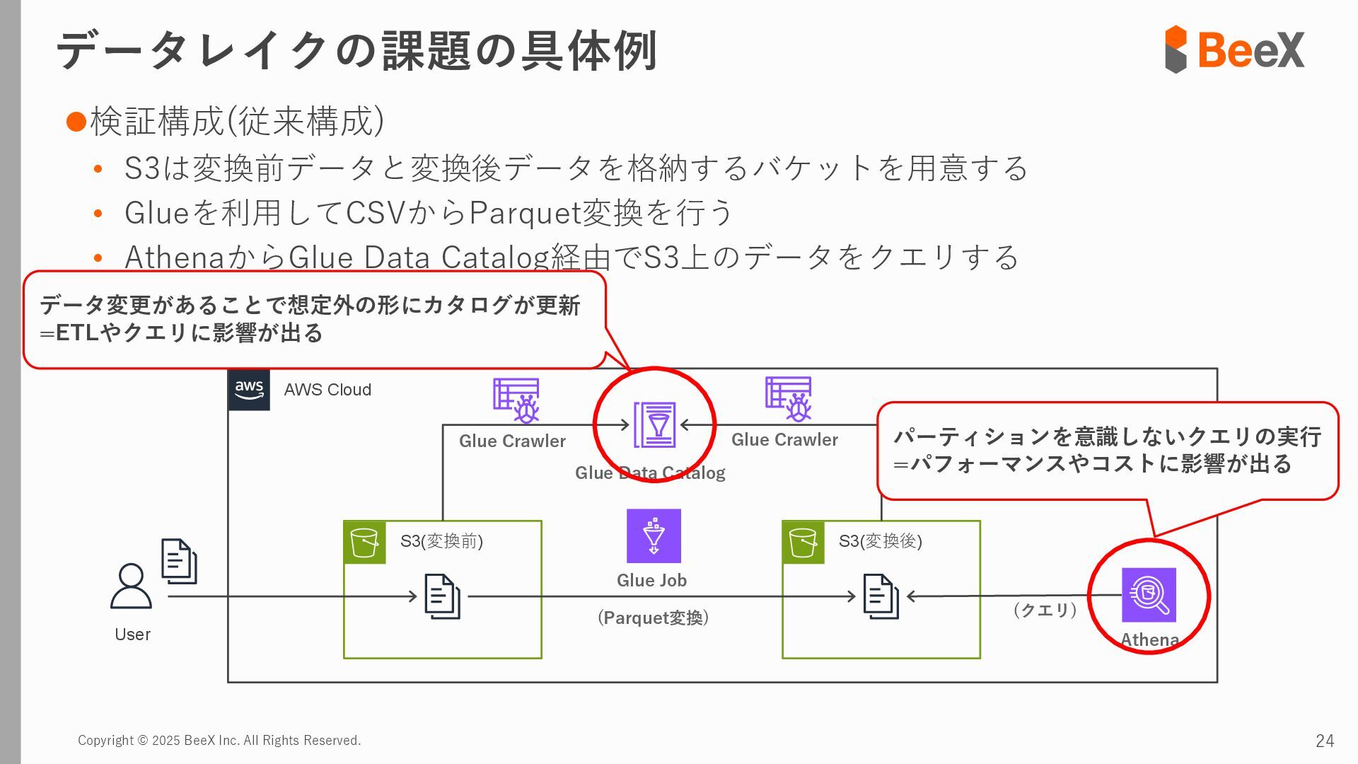 ⚫パターン3 連携途中でデータ型が変更された場合 timestamp,device_id,location,temperature_celsius,humidity_percent,battery_level,status 2024-11-13 12:00:00,TH-003,warehouse_a_zone3,23.8,43.5,89.0,0 2024-11-13 12:00:00,TH-004,warehouse_b_zone1,26.0,39.5,75.0,2 2024-11-13 12:00:00,TH-005,warehouse_b_zone2,24.7,41.6,82.0,0 2024-11-13 18:00:00,TH-001,warehouse_a_zone1,T23.4,43.8,92.5,0 2024-11-13 18:00:00,TH-002,warehouse_a_zone2,T24.0,42.4,85.5,0 2024-11-13 18:00:00,TH-003,warehouse_a_zone3,T22.7,45.1,89.5,0 temperature_celsius: Float型(22.5) battery_level: Integer型(95) status: String型("normal", "warning") temperature_celsius: String型("T23.4") battery_level: Float型(92.0, 92.5など) status: Integer型(0=normal, 1=warning, 2=error) 2024-11-13 18:00分から 以下のようにデータ型が変わるケース