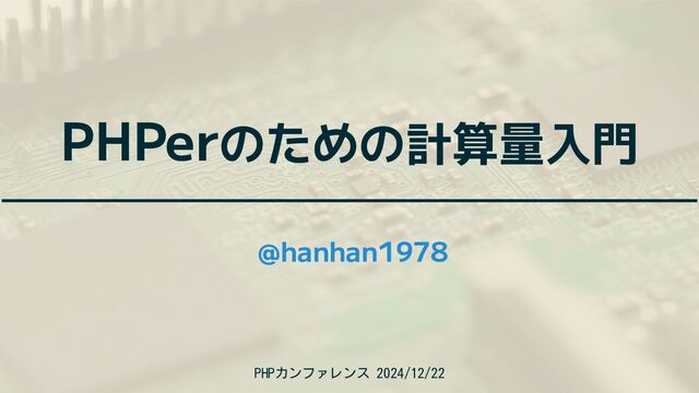 PHPerのための計算量入門 PHPカンファレンス 2024/12/22 @hanhan1978