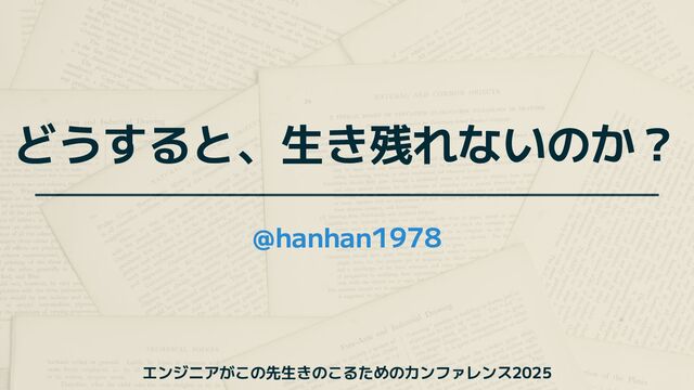 どうすると、生き残れないのか? @hanhan1978 エンジニアがこの先生きのこるためのカンファレンス2025