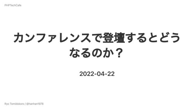 カンファレンスで登壇するとどう なるのか? 2022-04-22 PHPTechCafe Ryo Tomidokoro / @hanhan1978