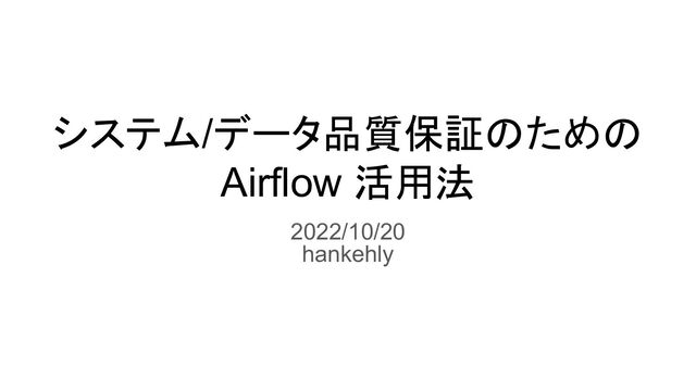 システム/データ品質保証のための Airflow 活用法 2022/10/20 hankehly