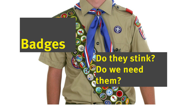 Skeptic “Badge” Better Prior Learning Assessment Can Be Higher Education’s Merit Badge How Badges Really Work in Higher Education The Gamification of Eductation Infographic How Gamification Uncovers Nuance In The Learning Process 7 Things You Should Know About Badges Better Futures for 2 Million Americans Through Open Badges further (links) Commercial version of Mozilla OpenBadges that includes issuing & creation tools Wordpress plugin that supports creation and issuing of badges via OpenBadges, Badgestack & Credly ) other players in the badgespace