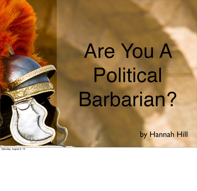 August 3, 13 The difference between a soldier and a barbarian isn’t sincerity, bravery, patriotism. They both have those qualities. It’s the willingness to help develop a strategy, and more importantly, the ability to follow someone else’s strategy for the sake of getting something done. Remember: