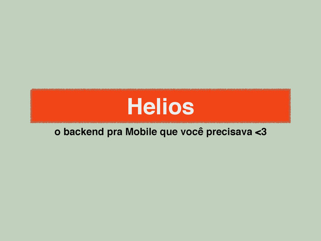 • Preciso de backend? (discussão com exemplos reais!) • Helios - a Saga! • Arquitetura do Helios • Helios e Heroku • Sincronizando modelos • Gifs e imagens legais!