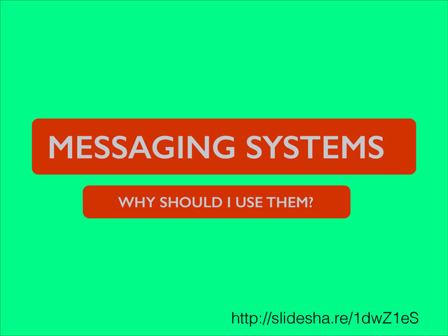 or more systems? • A list of alternatives to integrate them • Problems and good points of these strategies • Messaging systems - the good parts • Messaging systems - the bad points • Cool pictures, stupid jokes and funny gifs (or not that funny) http://slidesha.re/1dwZ1eS