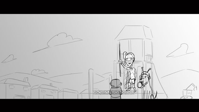 two Siblings and their dog are playing knights and space wizards when a UFO crash lands in a construction site in their neighborhood.