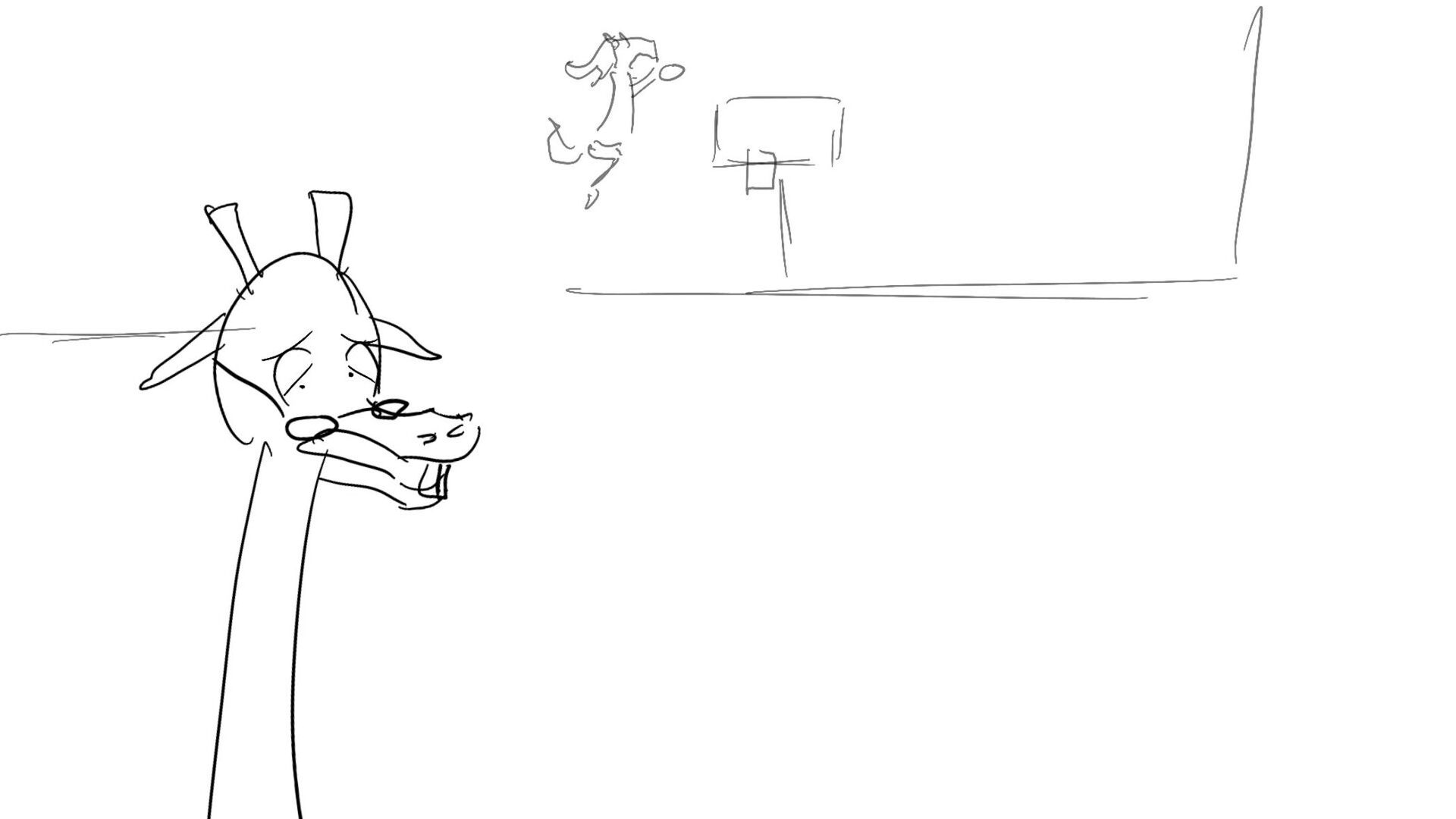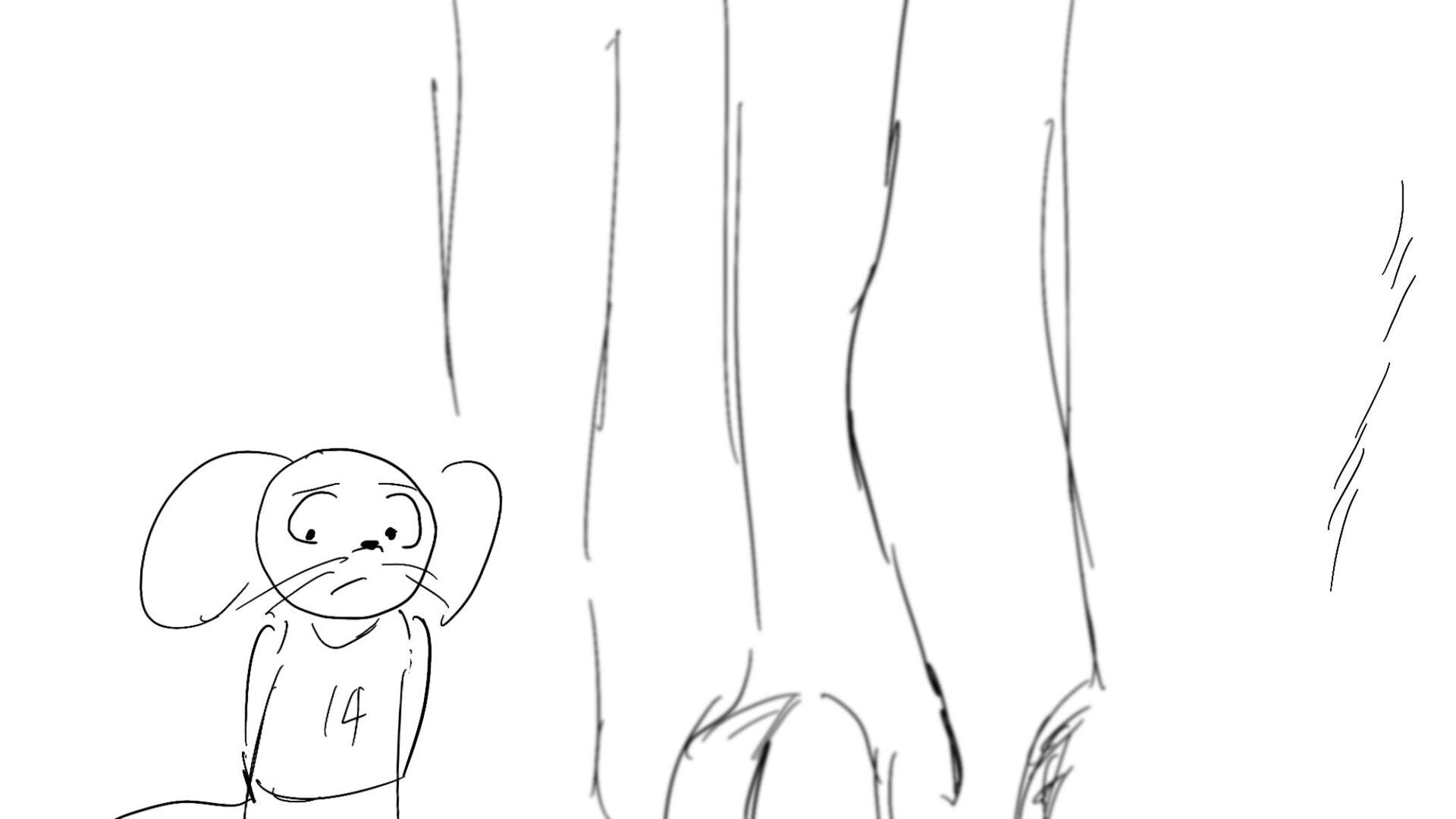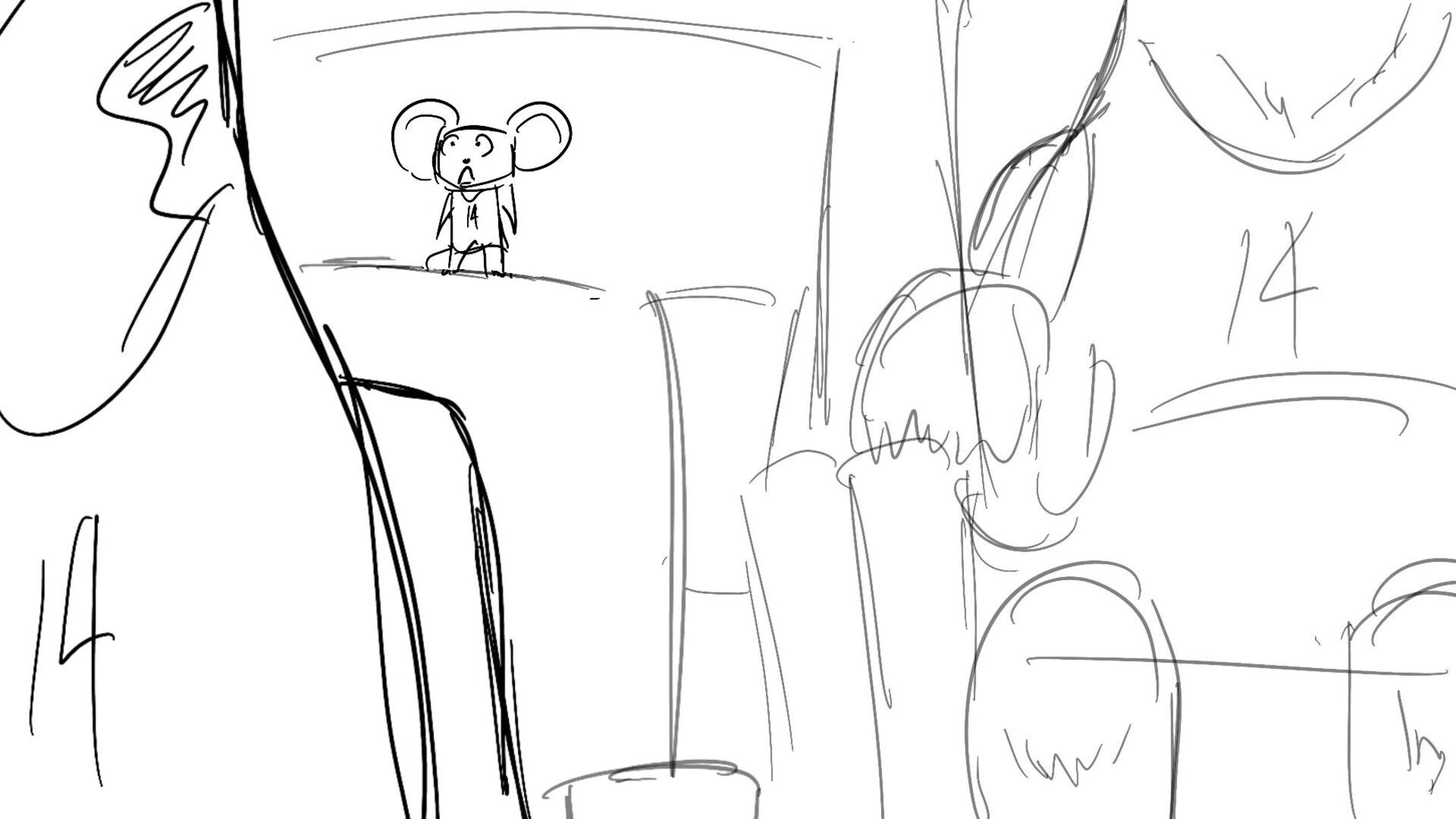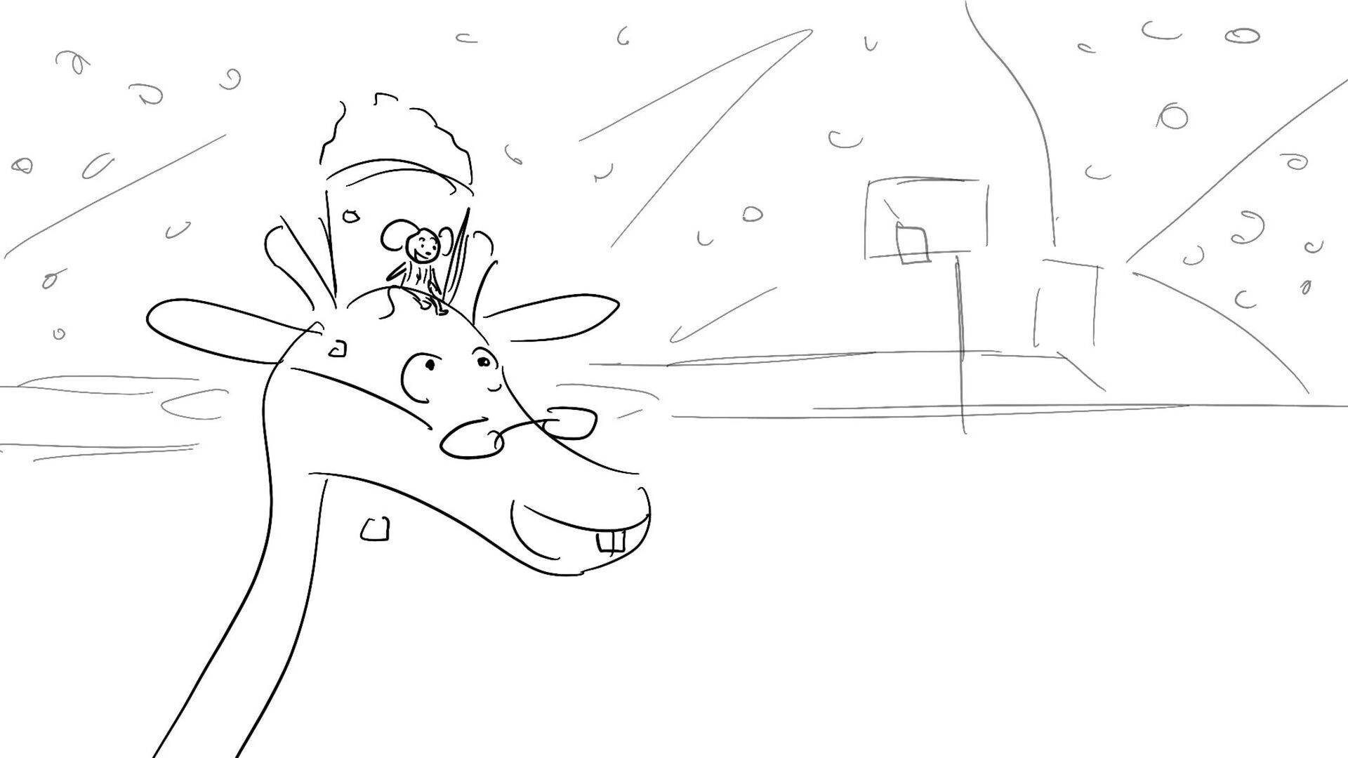 A little mouse trying to watch a basketball game when a giraffe blocks his view. How far will this mouse go to watch the and his favorite player win the winning shot.