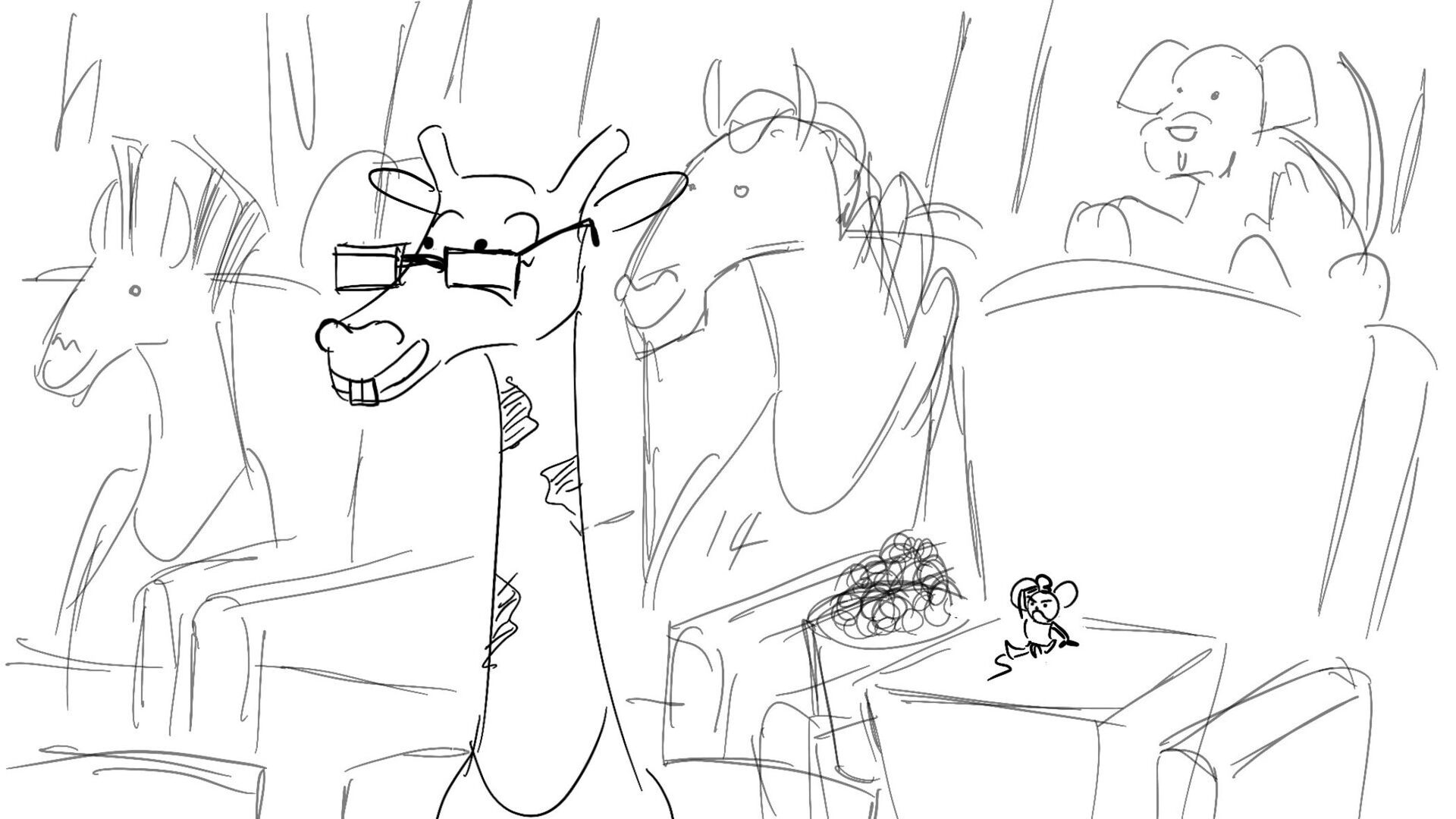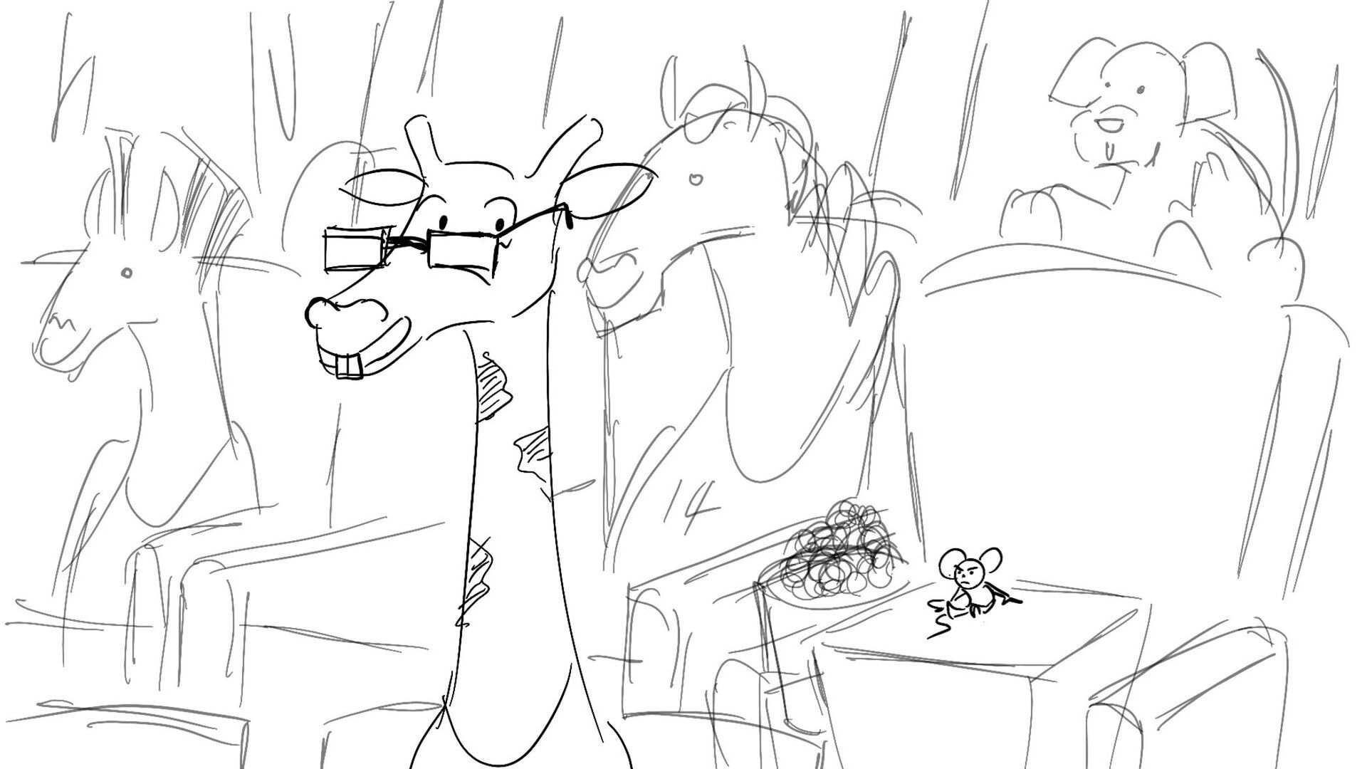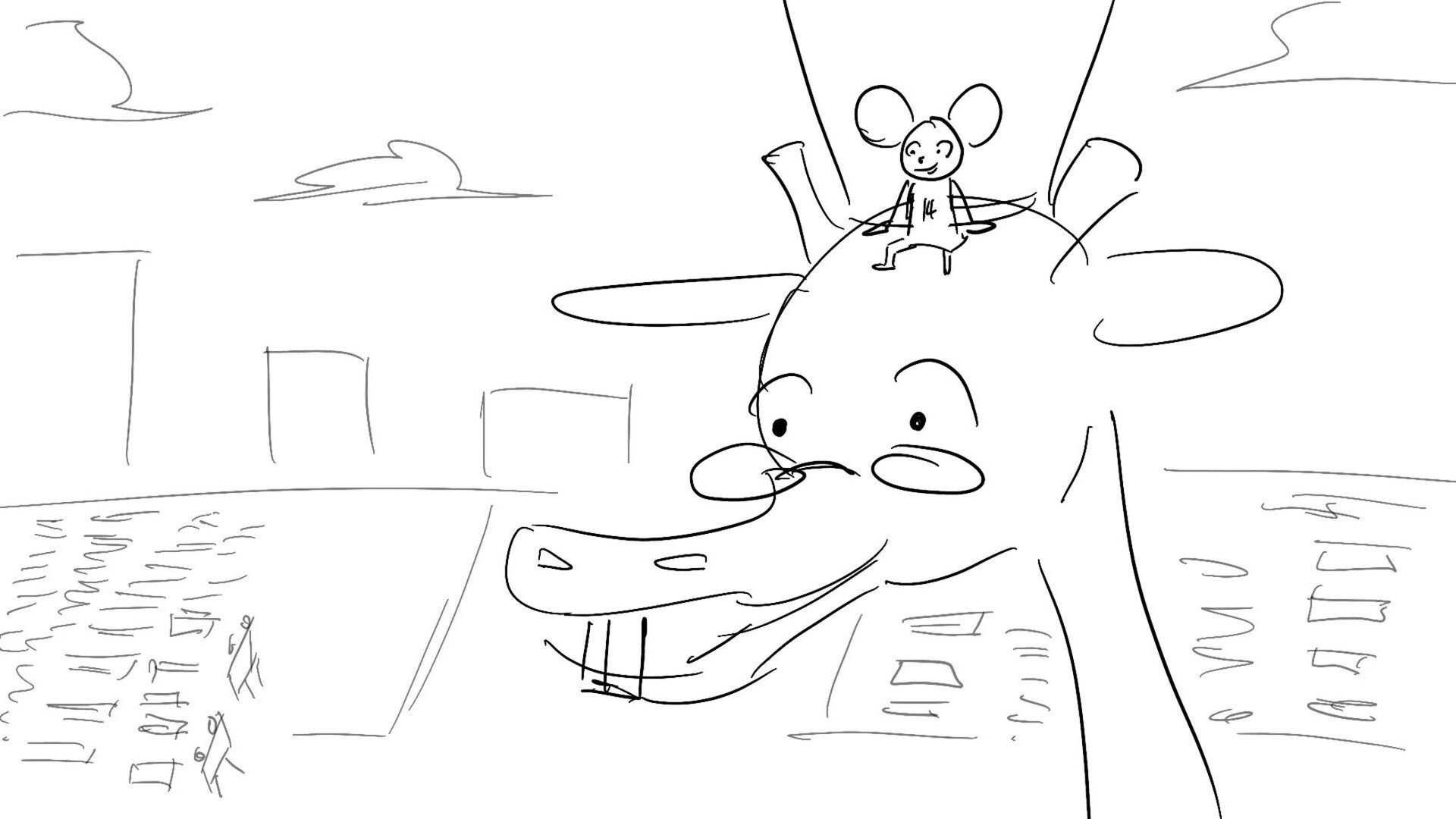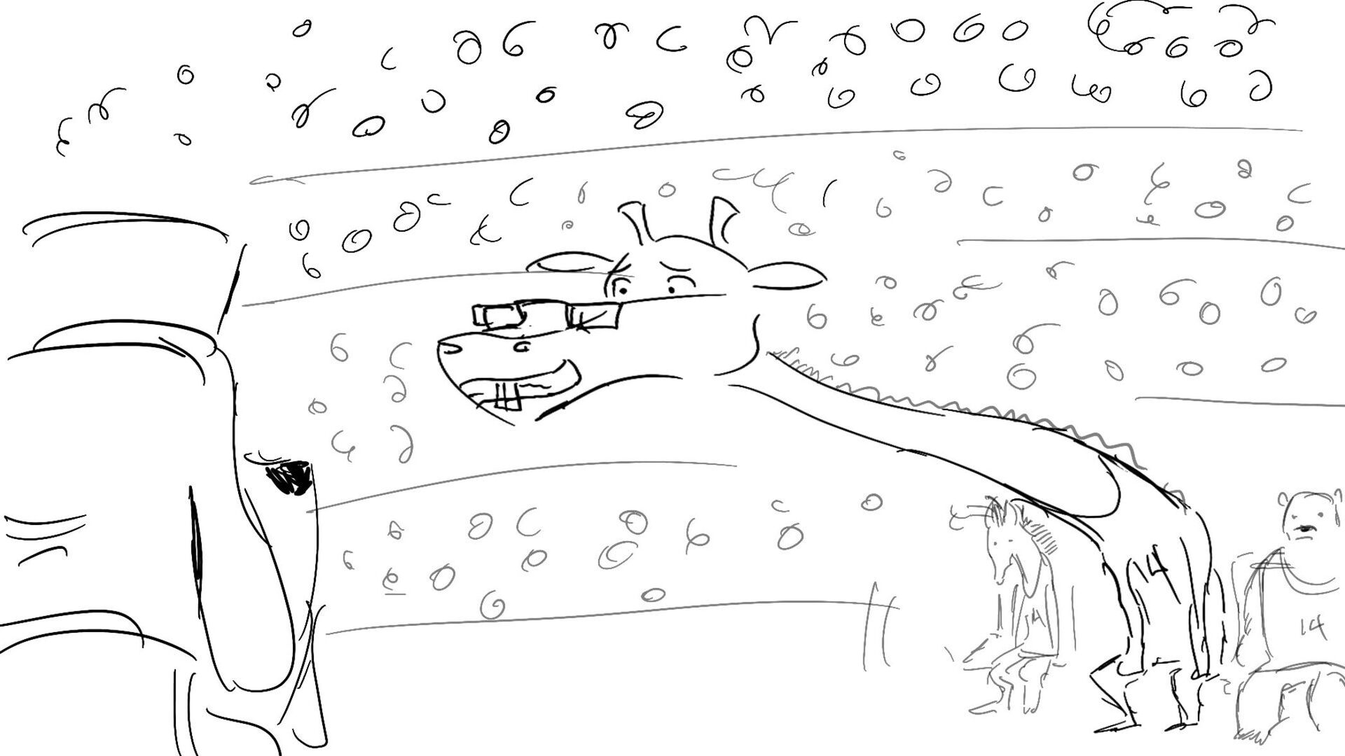 A little mouse trying to watch a basketball game when a giraffe blocks his view. How far will this mouse go to watch the and his favorite player win the winning shot.