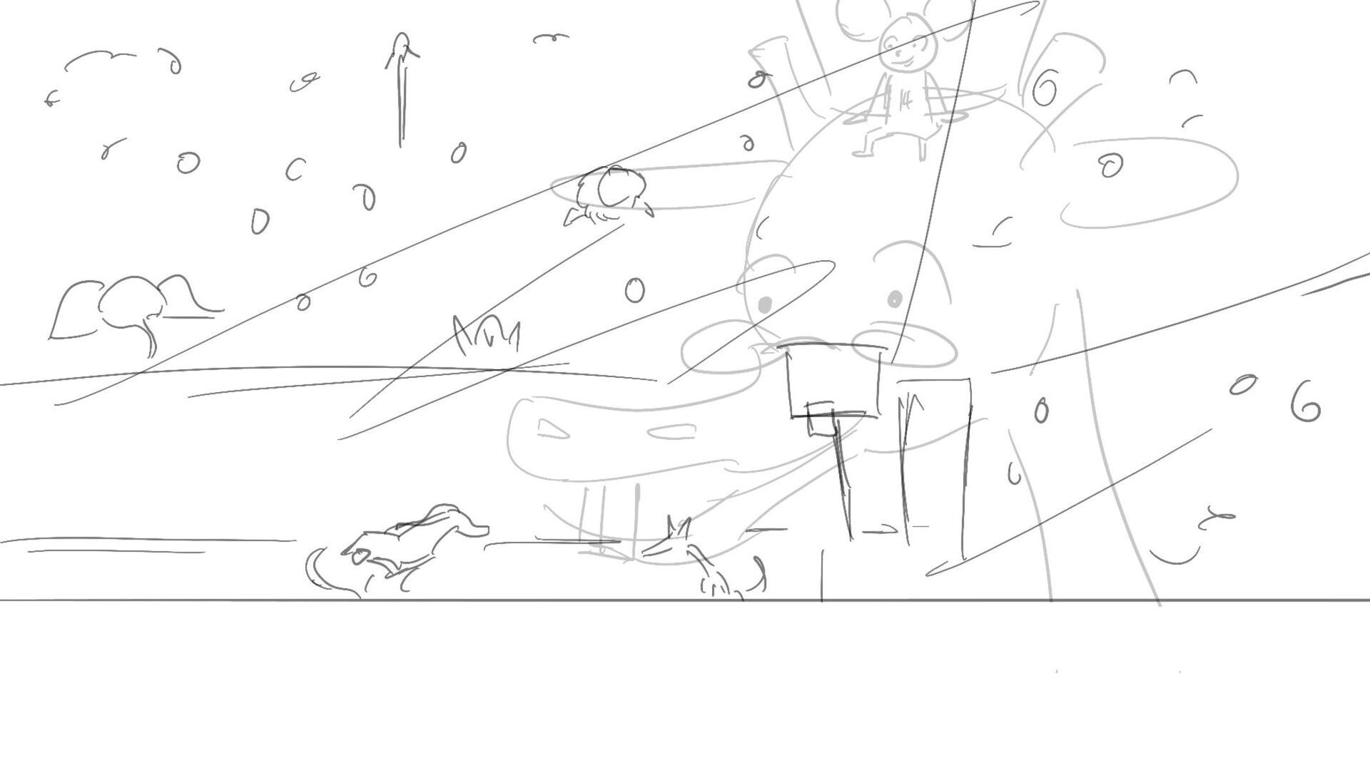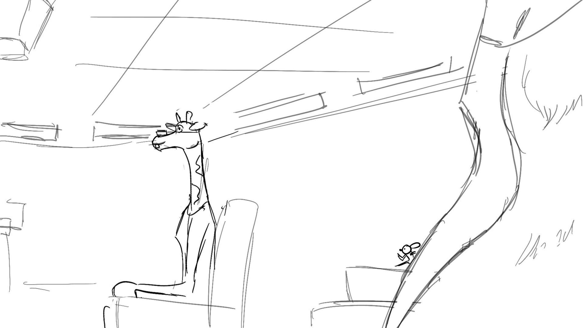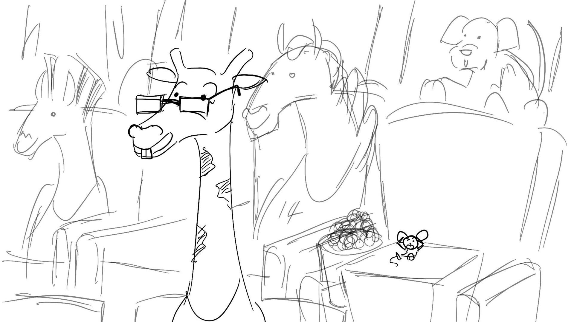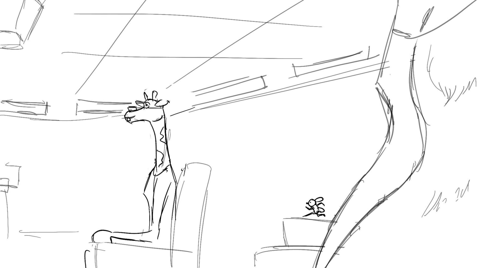 A little mouse trying to watch a basketball game when a giraffe blocks his view. How far will this mouse go to watch the and his favorite player win the winning shot.