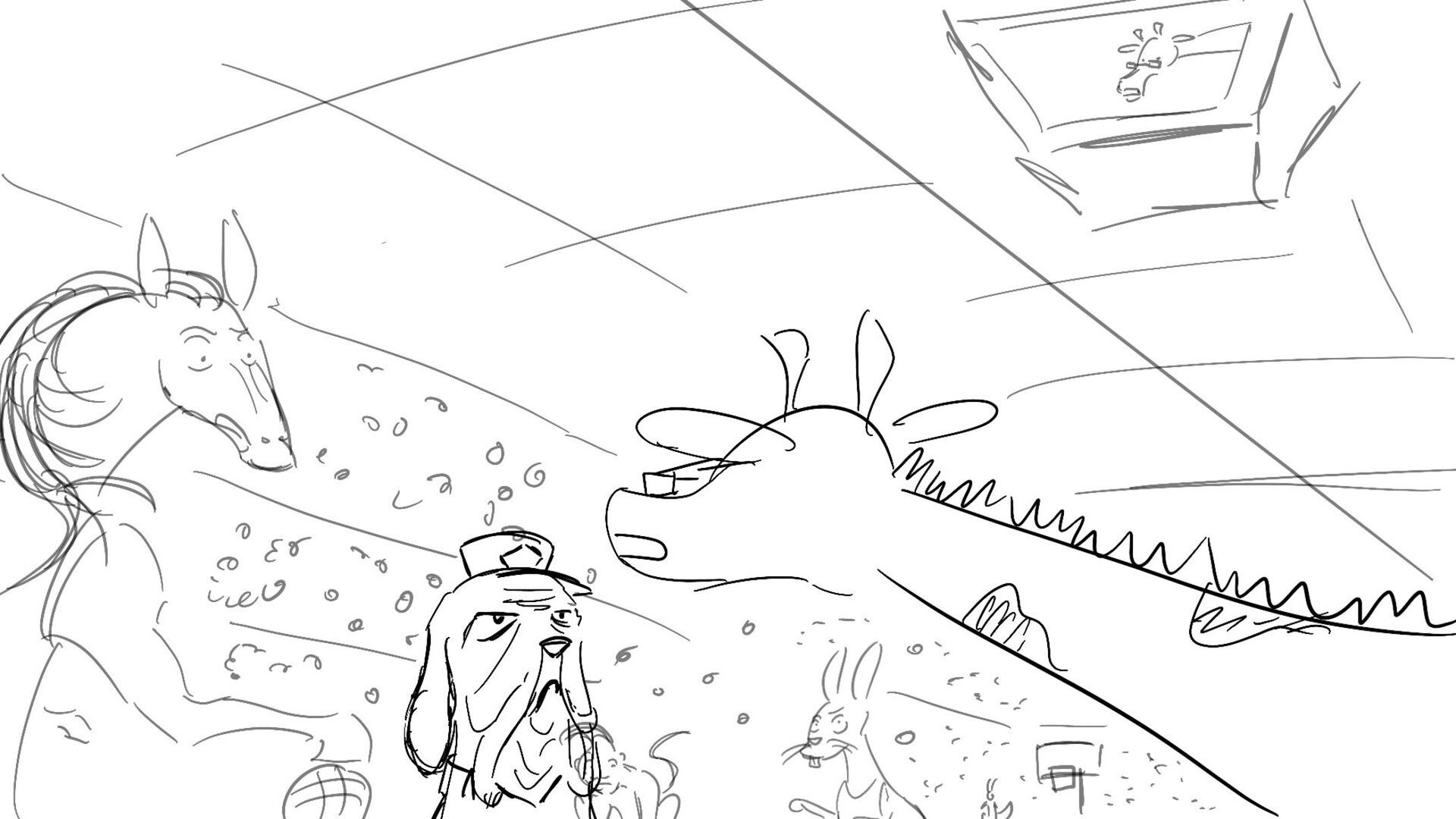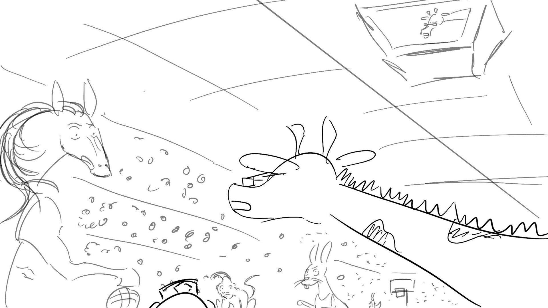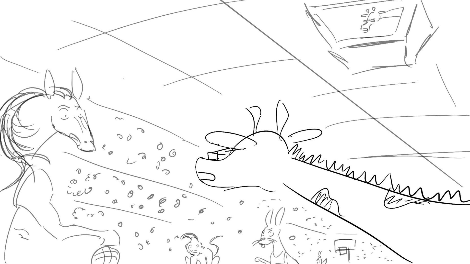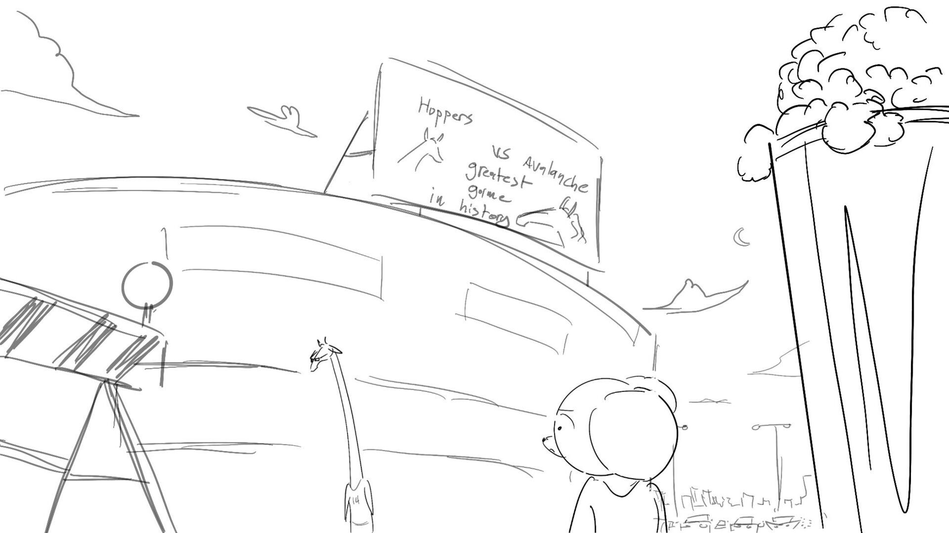 A little mouse trying to watch a basketball game when a giraffe blocks his view. How far will this mouse go to watch the and his favorite player win the winning shot.