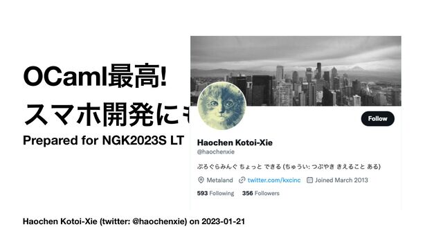 Haochen Kotoi-Xie (twitter: @haochenxie) on 2023-01-21 OCaml࠷ߴ! εϚϗ։ൃʹ͑ͪΌ͏?! Prepared for