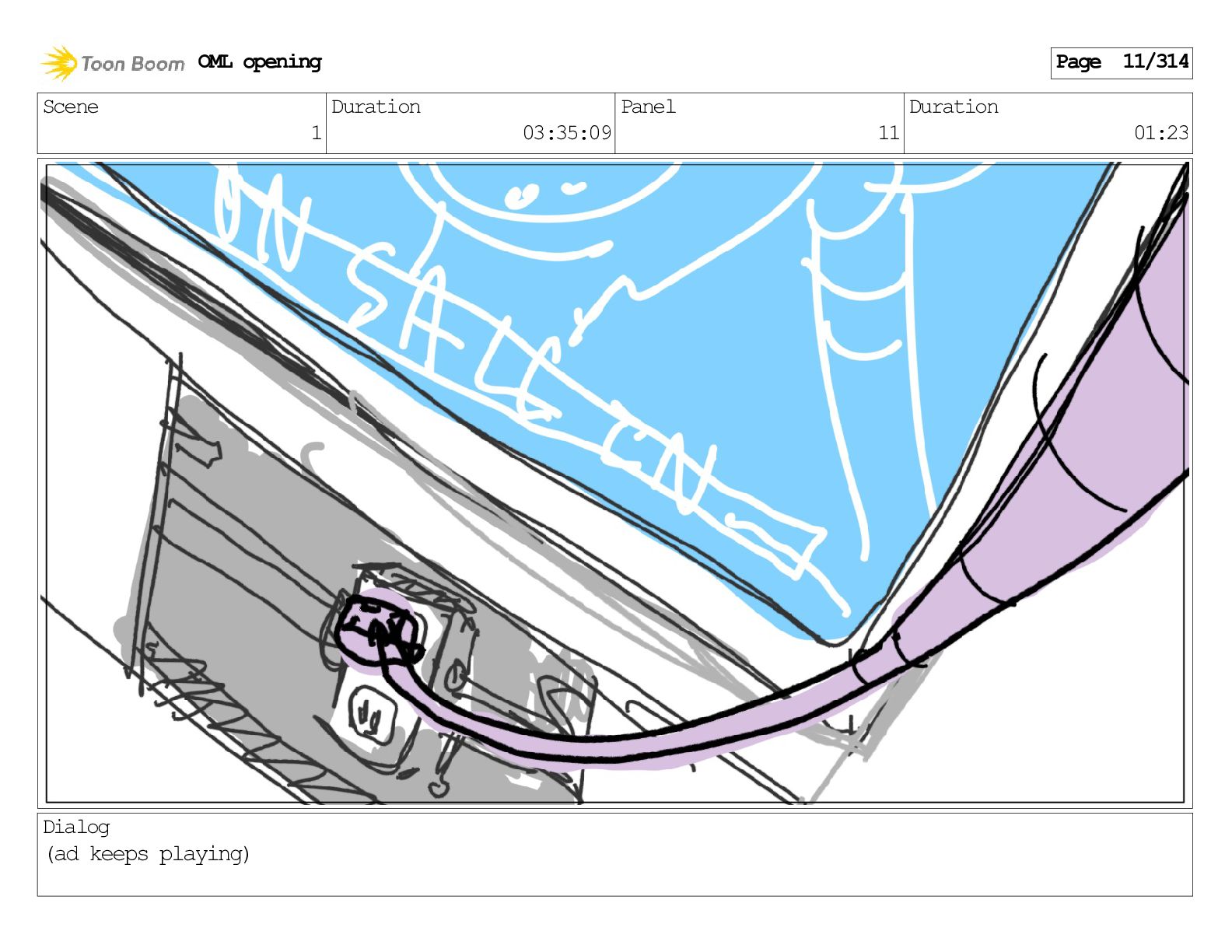 Scene 1 Duration 03:35:09 Panel 310 Duration 00:11 OML opening