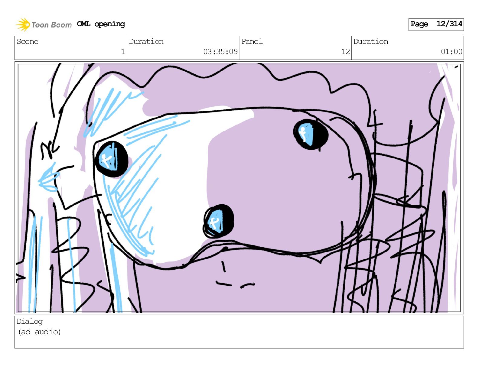 Scene 1 Duration 03:35:09 Panel 12 Duration 01:00 Dialog (ad