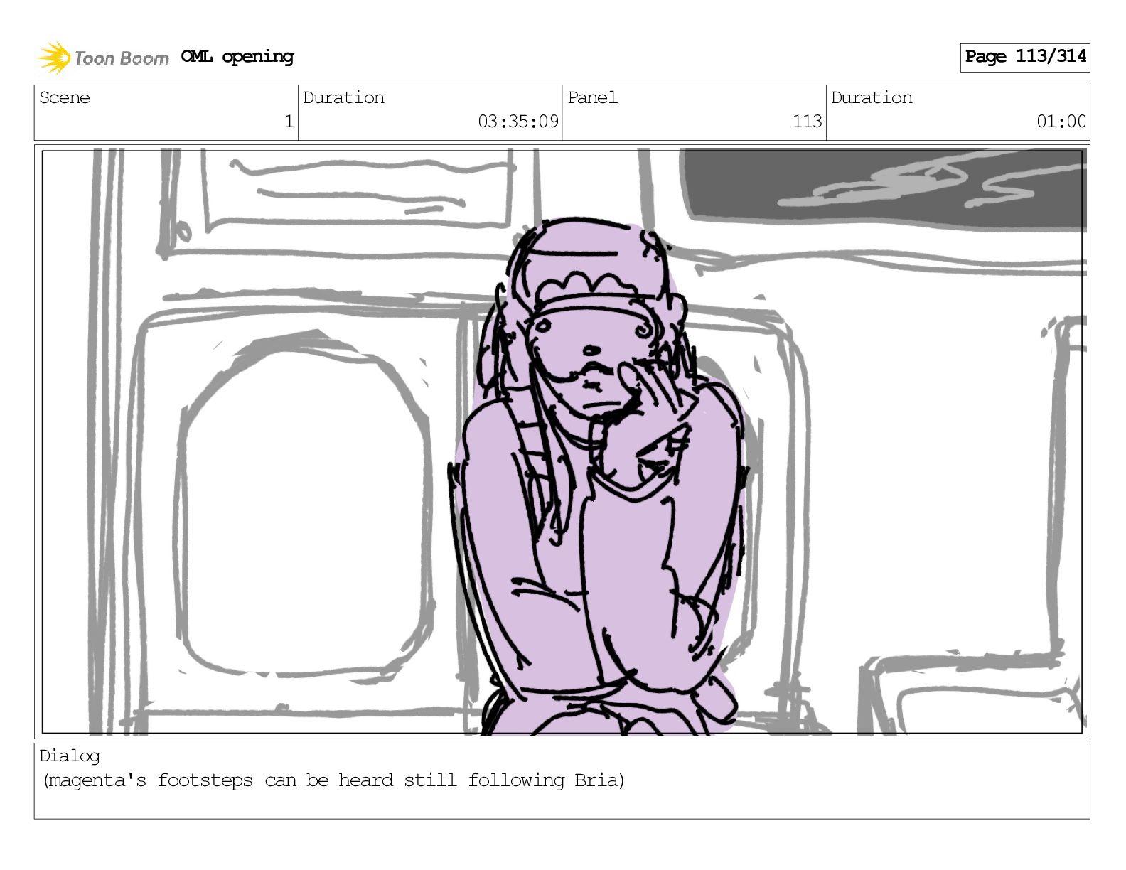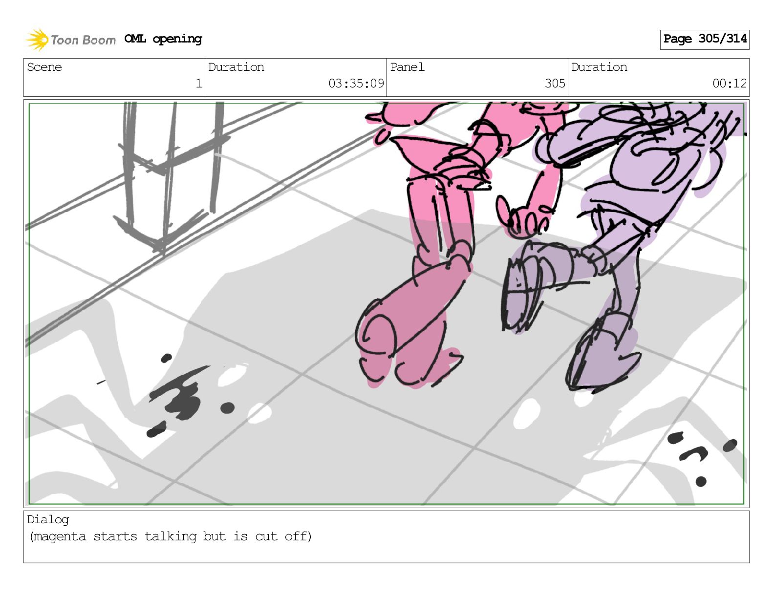 Scene 1 Duration 03:35:09 Panel 305 Duration 00:12 Dialog (magenta