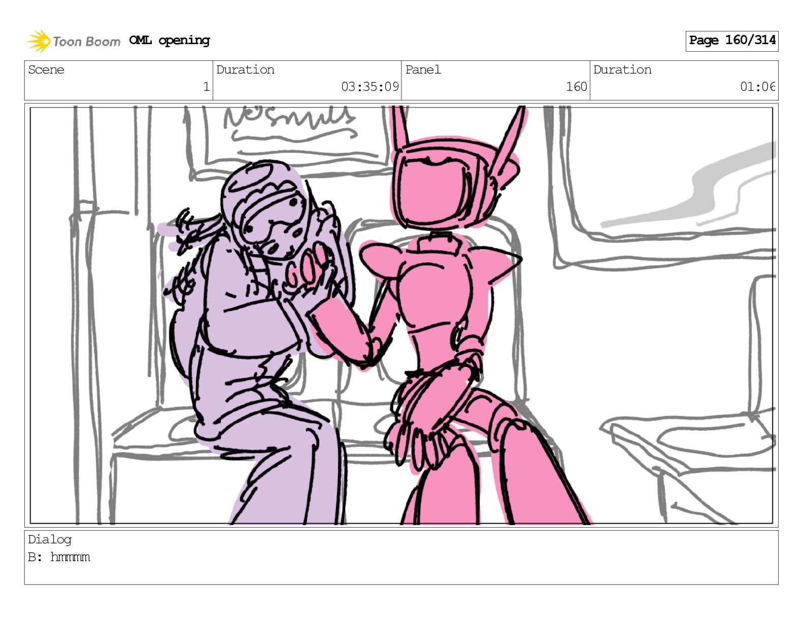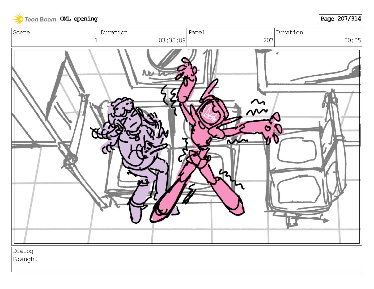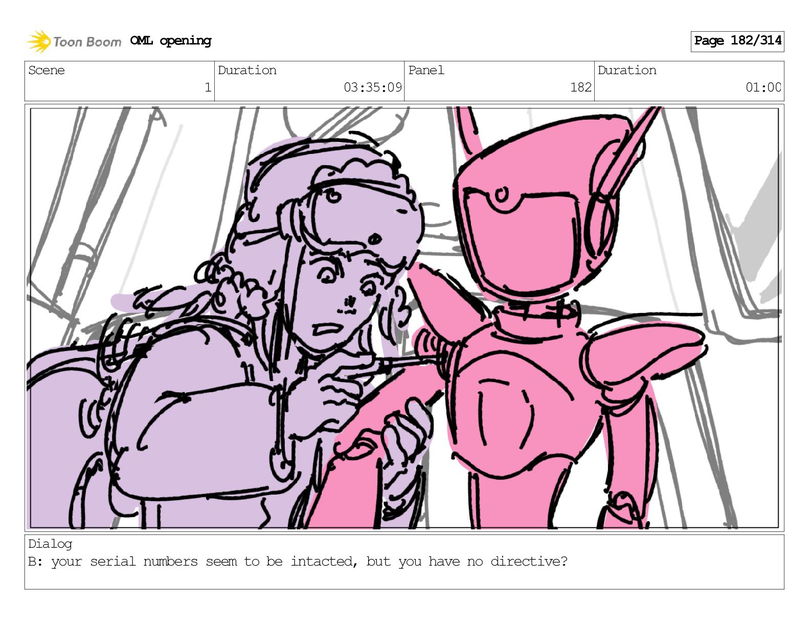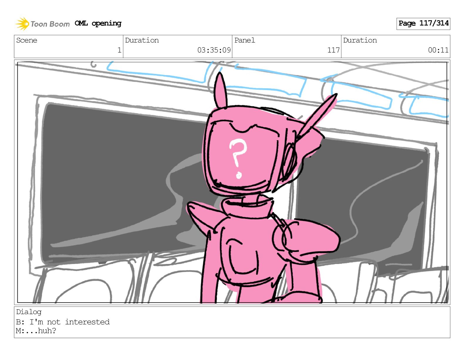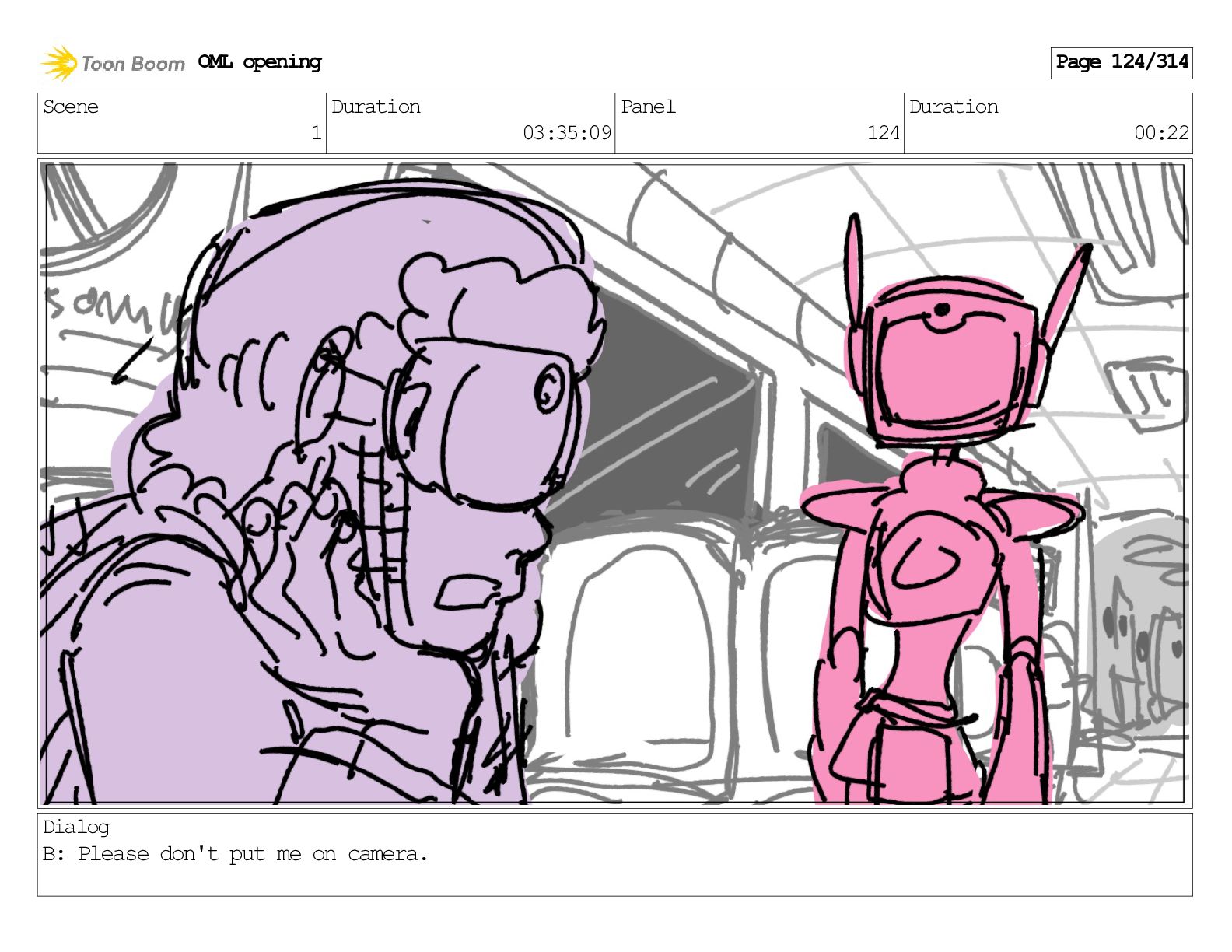 Scene 1 Duration 03:35:09 Panel 267 Duration 01:12 Dialog B:whats