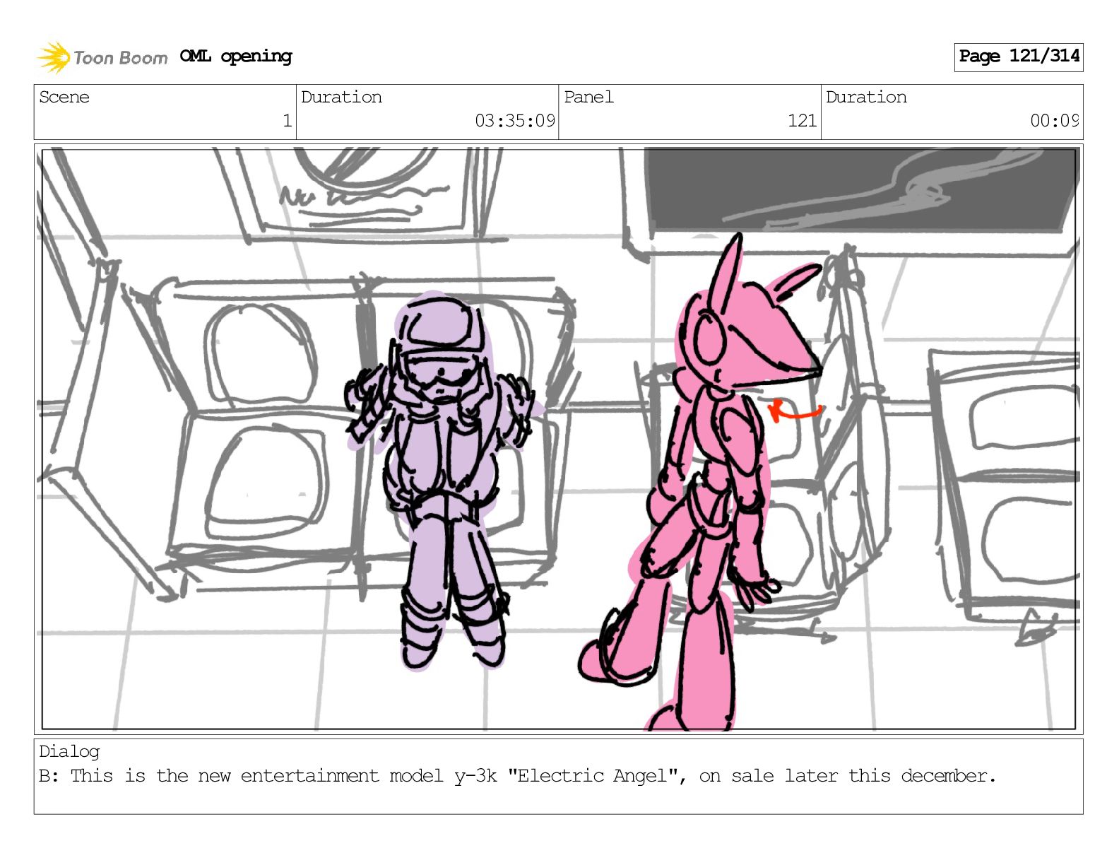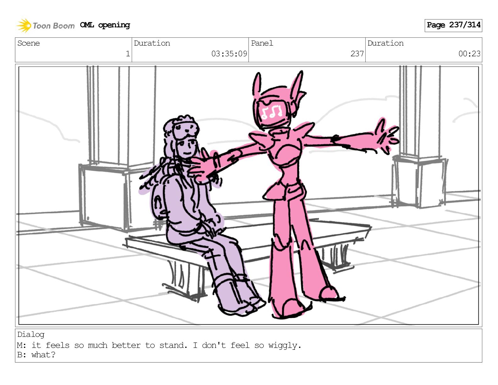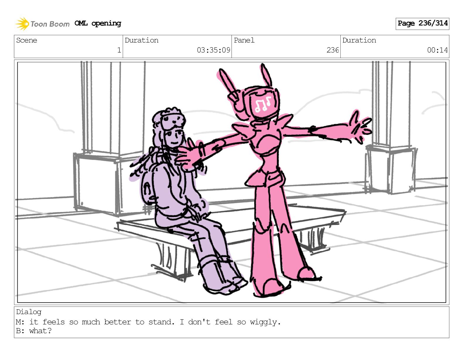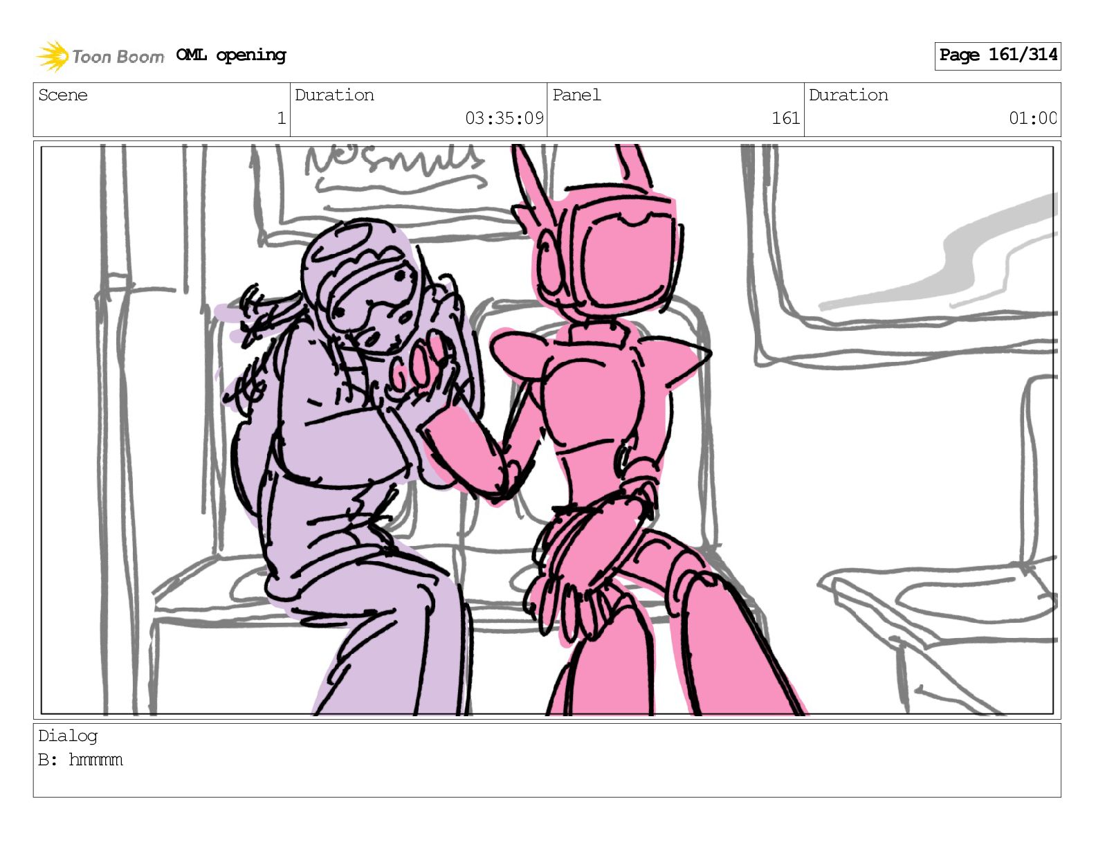 Scene 1 Duration 03:35:09 Panel 267 Duration 01:12 Dialog B:whats