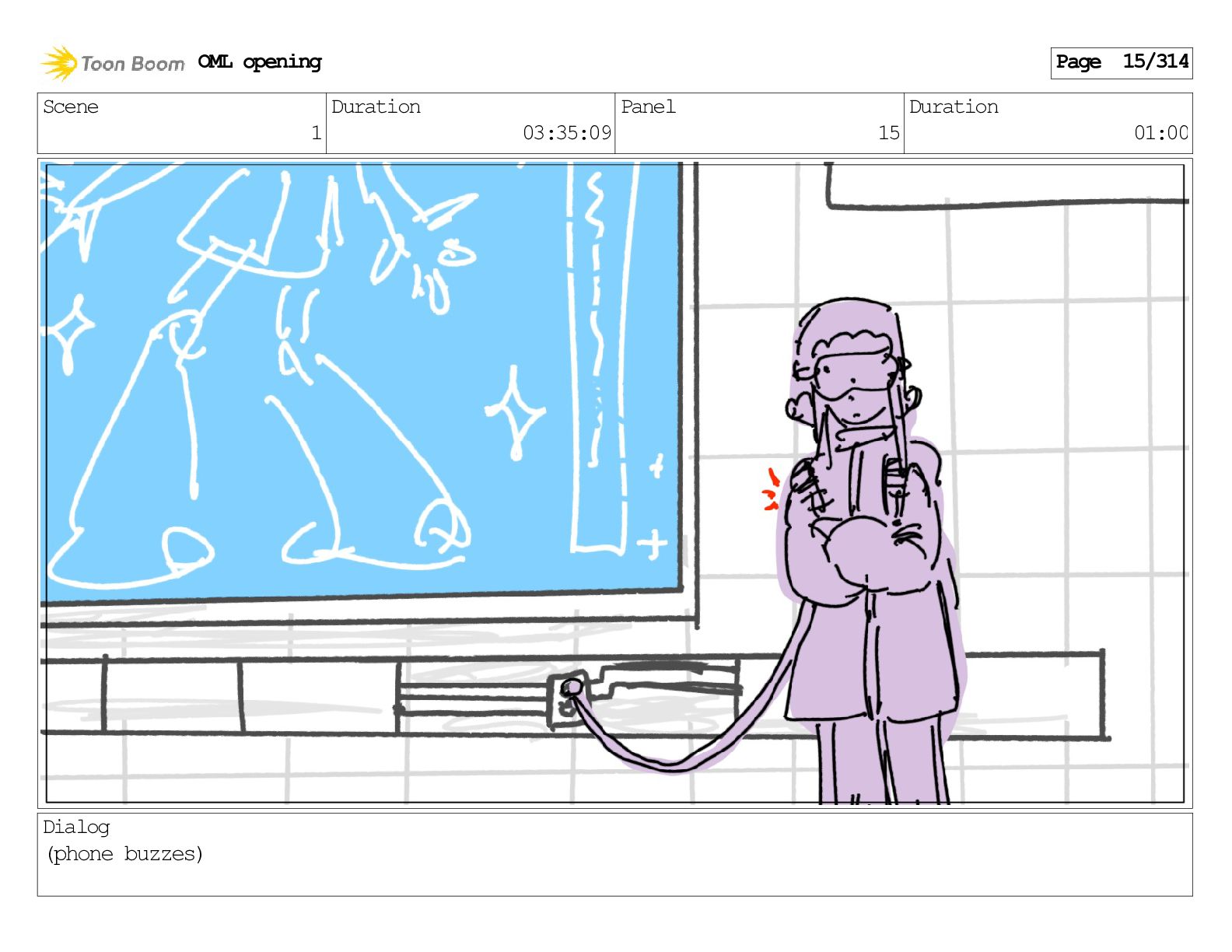 Scene 1 Duration 03:35:09 Panel 15 Duration 01:00 Dialog (phone