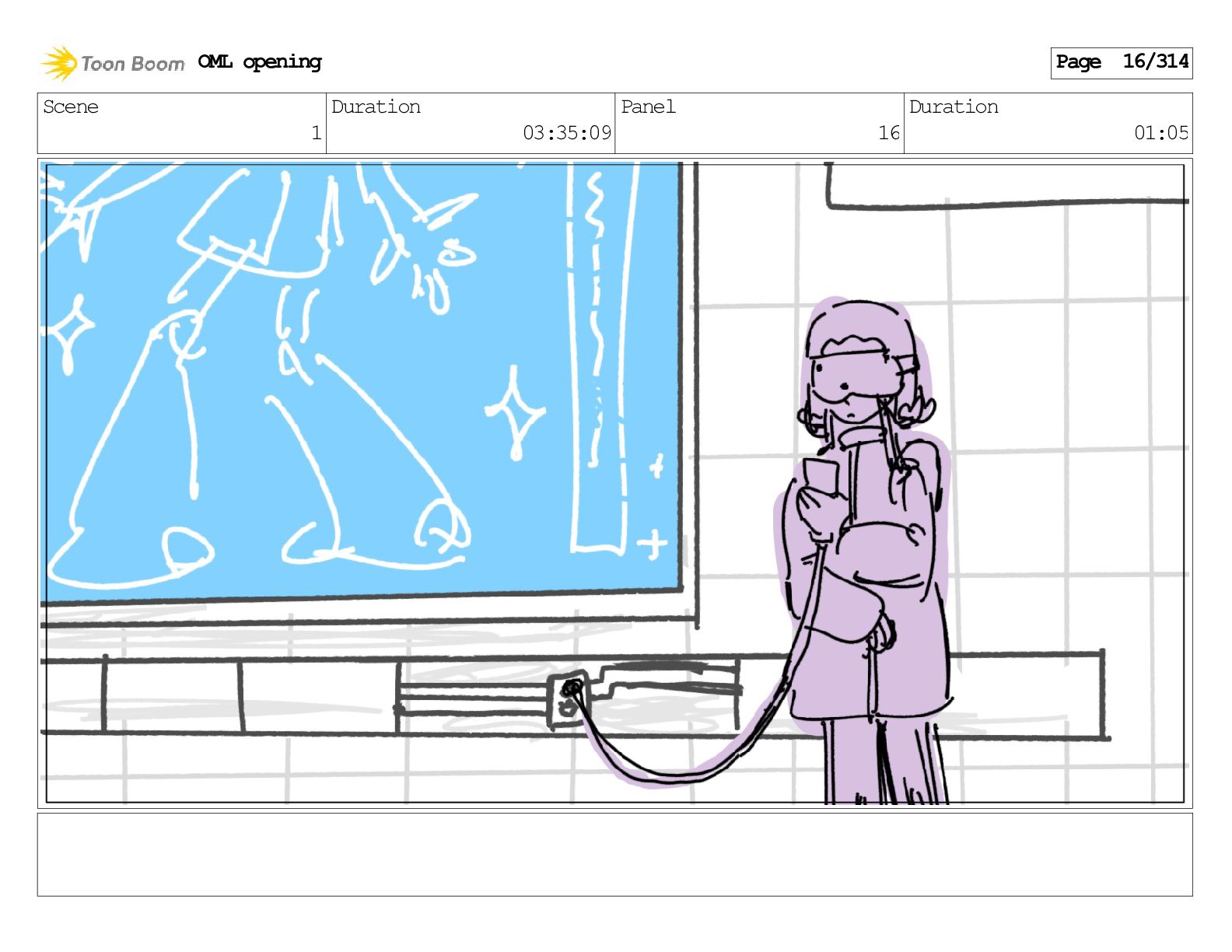 Scene 1 Duration 03:35:09 Panel 16 Duration 01:05 OML opening