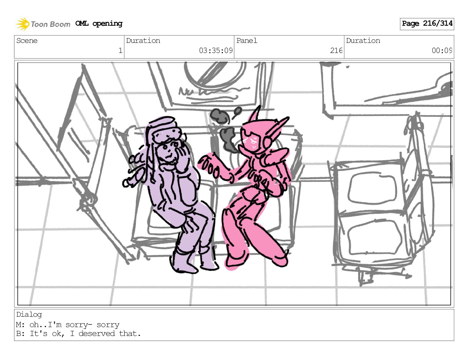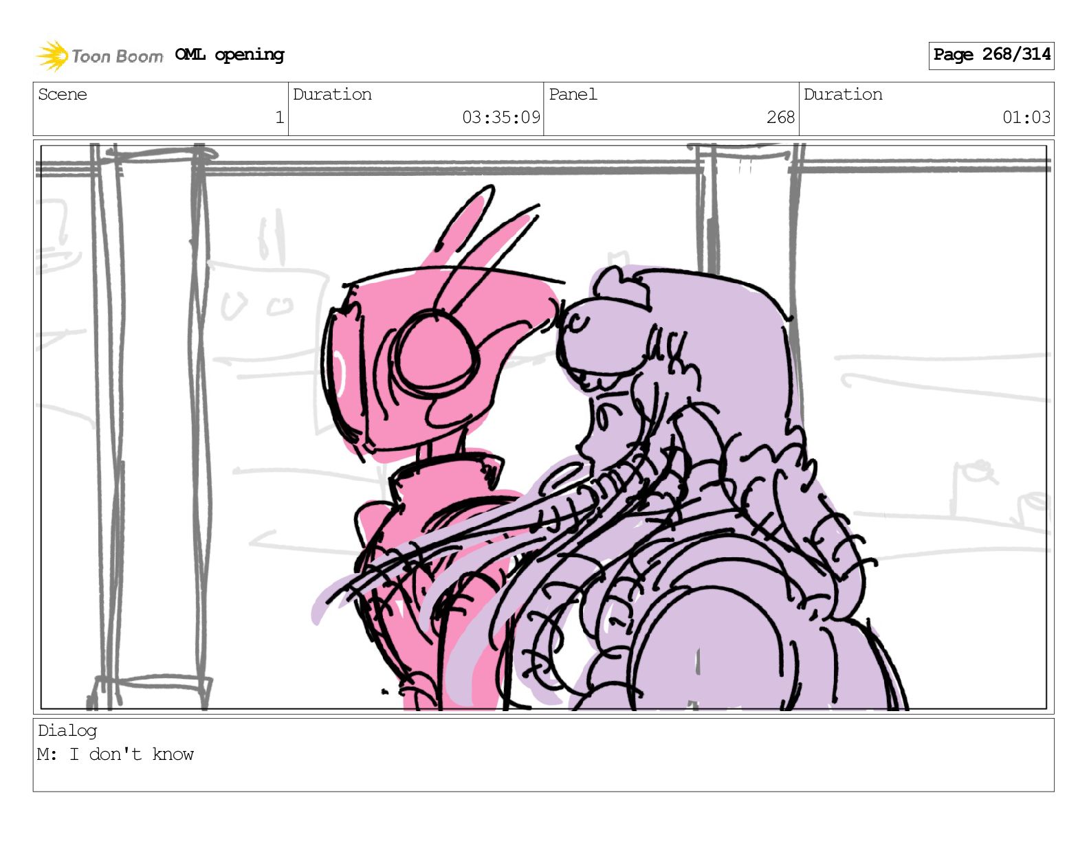 Scene 1 Duration 03:35:09 Panel 268 Duration 01:03 Dialog M: