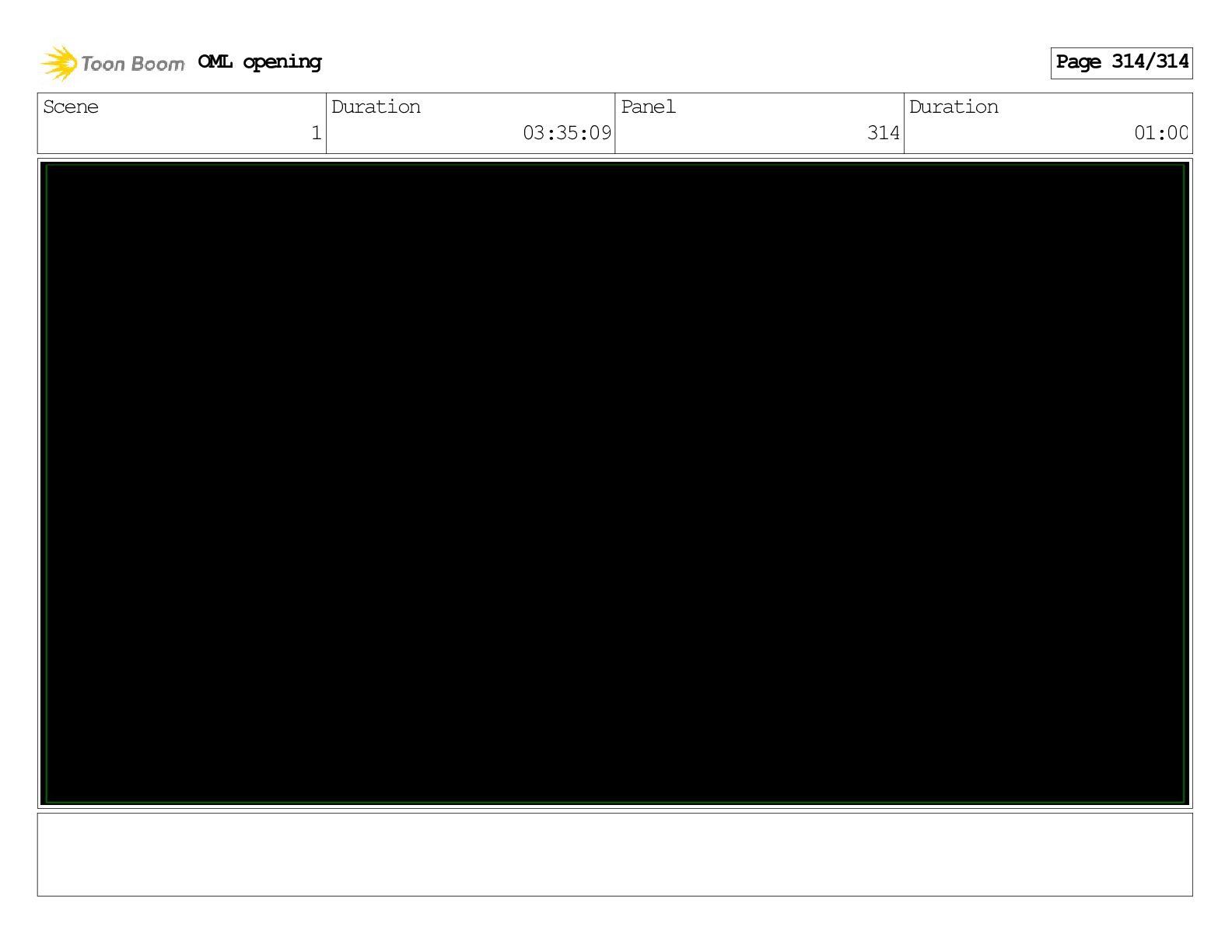 Scene 1 Duration 03:35:09 Panel 314 Duration 01:00 OML opening