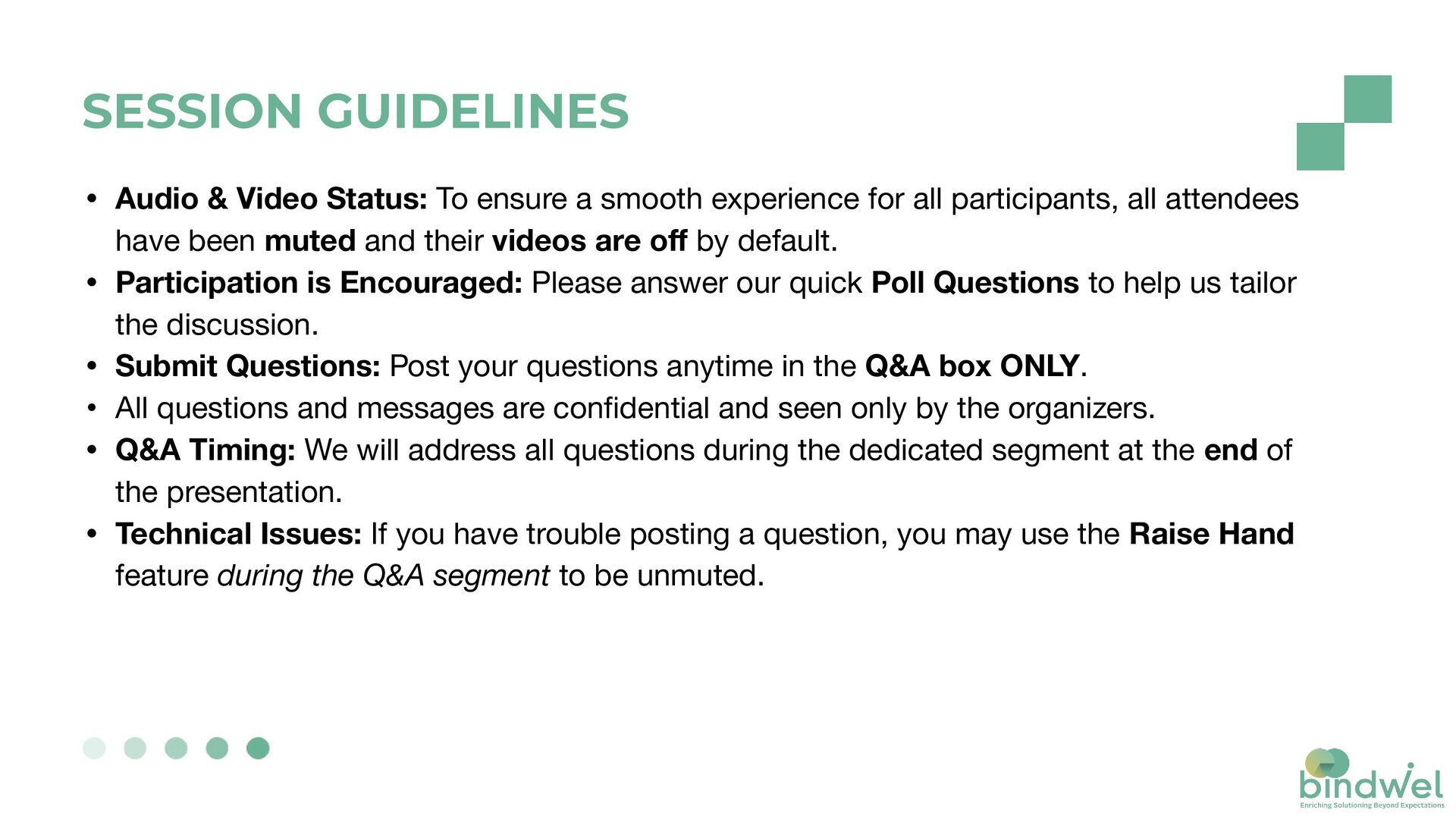 smooth experience for all participants, all attendees have been muted and their videos are off by default. • Participation is Encouraged: Please answer our quick Poll Questions to help us tailor the discussion. • Submit Questions: Post your questions anytime in the Q&A box ONLY. • All questions and messages are confidential and seen only by the organizers. • Q&A Timing: We will address all questions during the dedicated segment at the end of the presentation. • Technical Issues: If you have trouble posting a question, you may use the Raise Hand feature during the Q&A segment to be unmuted.