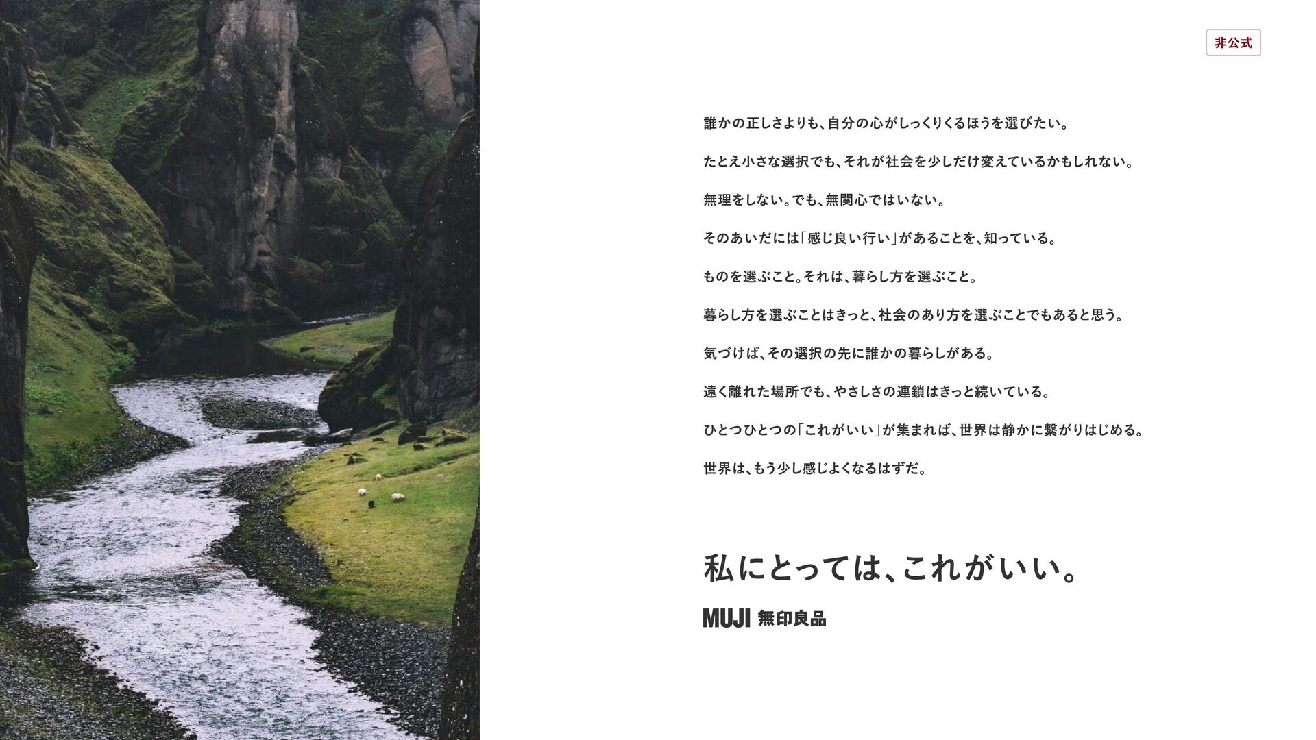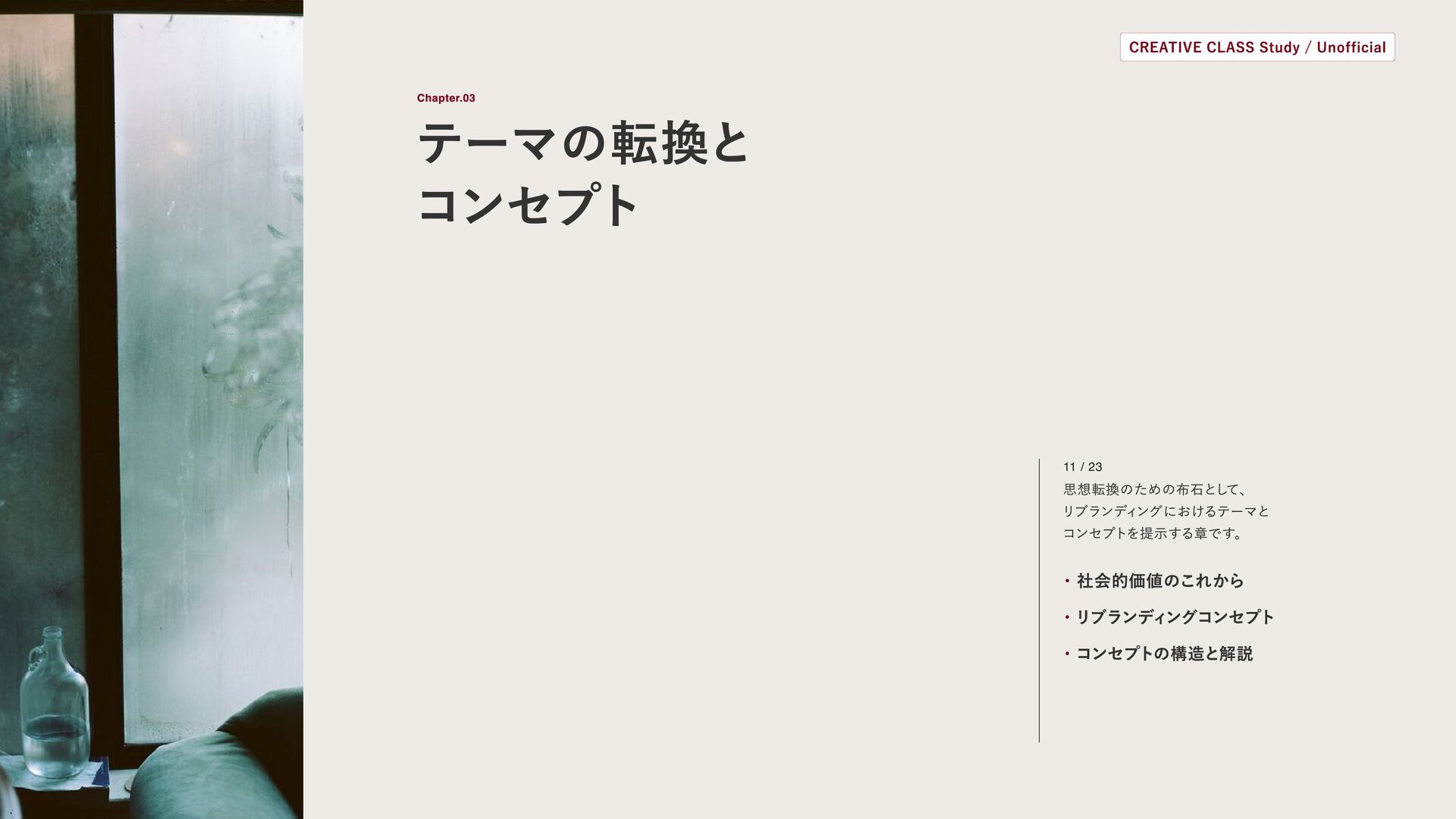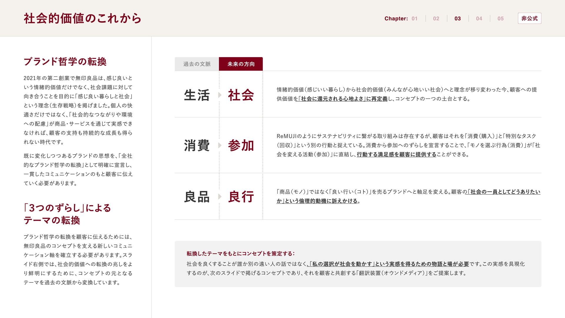 オンラインスクール「CREATIVE CLASS」で制作した課題です。 スライドの内容やWebサイトデザインは、個人の学習目的で制作したコンセプトおよびリデザインであり、 当該企業・ブランドとは一切関係のない非公式のものです。