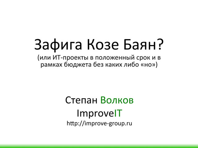 Зафига Козе Баян? (или ИТ-‐проекты в положенный срок и в рамках бюджета без каких либо «но»)