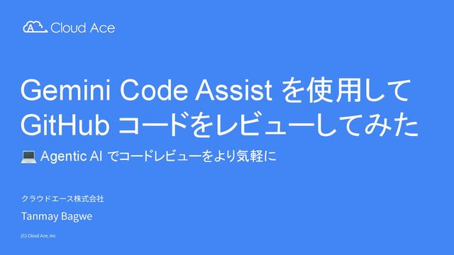 💻 Agentic AI でコードレビューをより気軽に Tanmay Bagwe クラウドエース株式会社