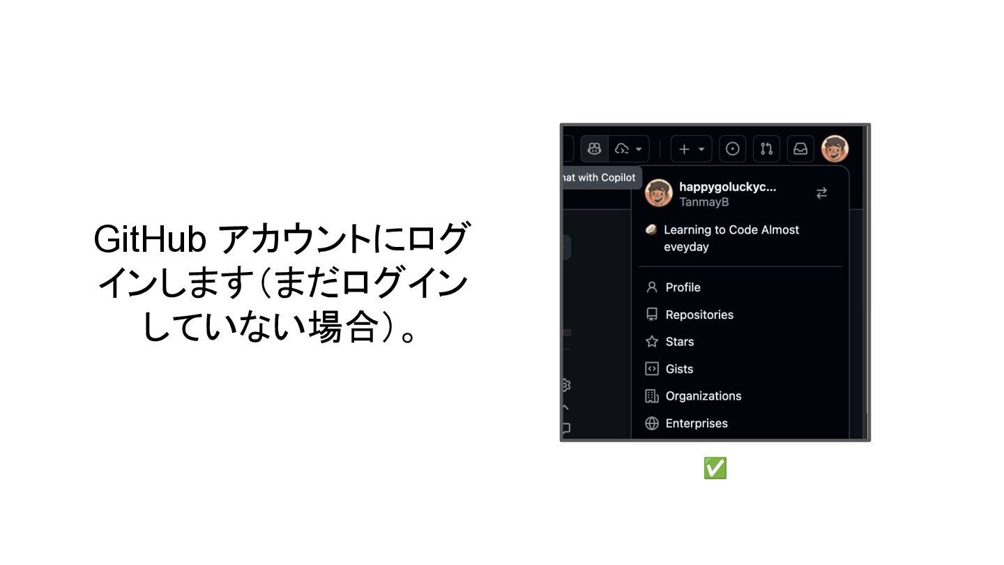 GitHub アカウントにログ インします(まだログイン していない場合)。 ✅