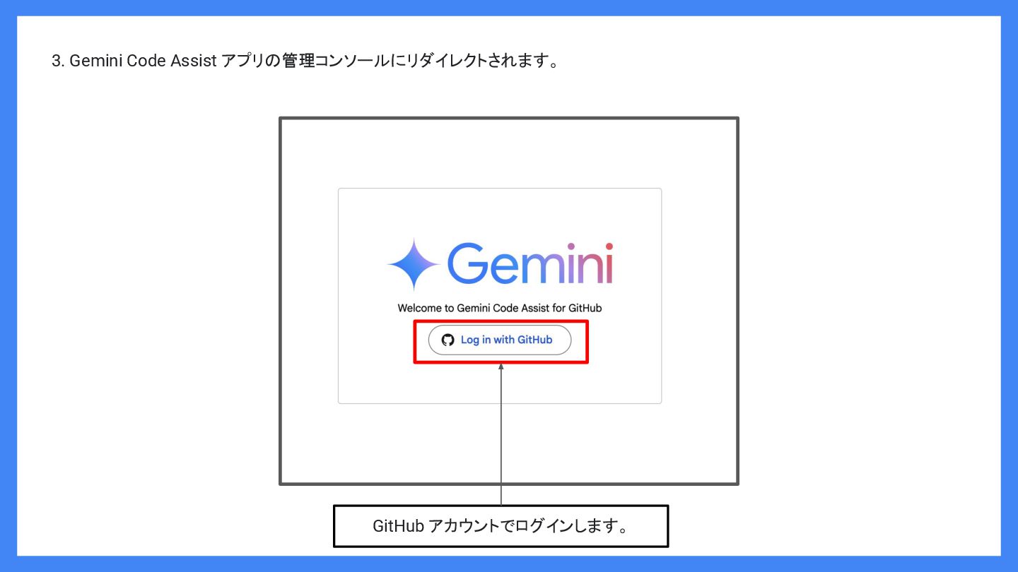 3. Gemini Code Assist アプリの管理コンソールにリダイレクトされます。 GitHub アカウントでログインします。