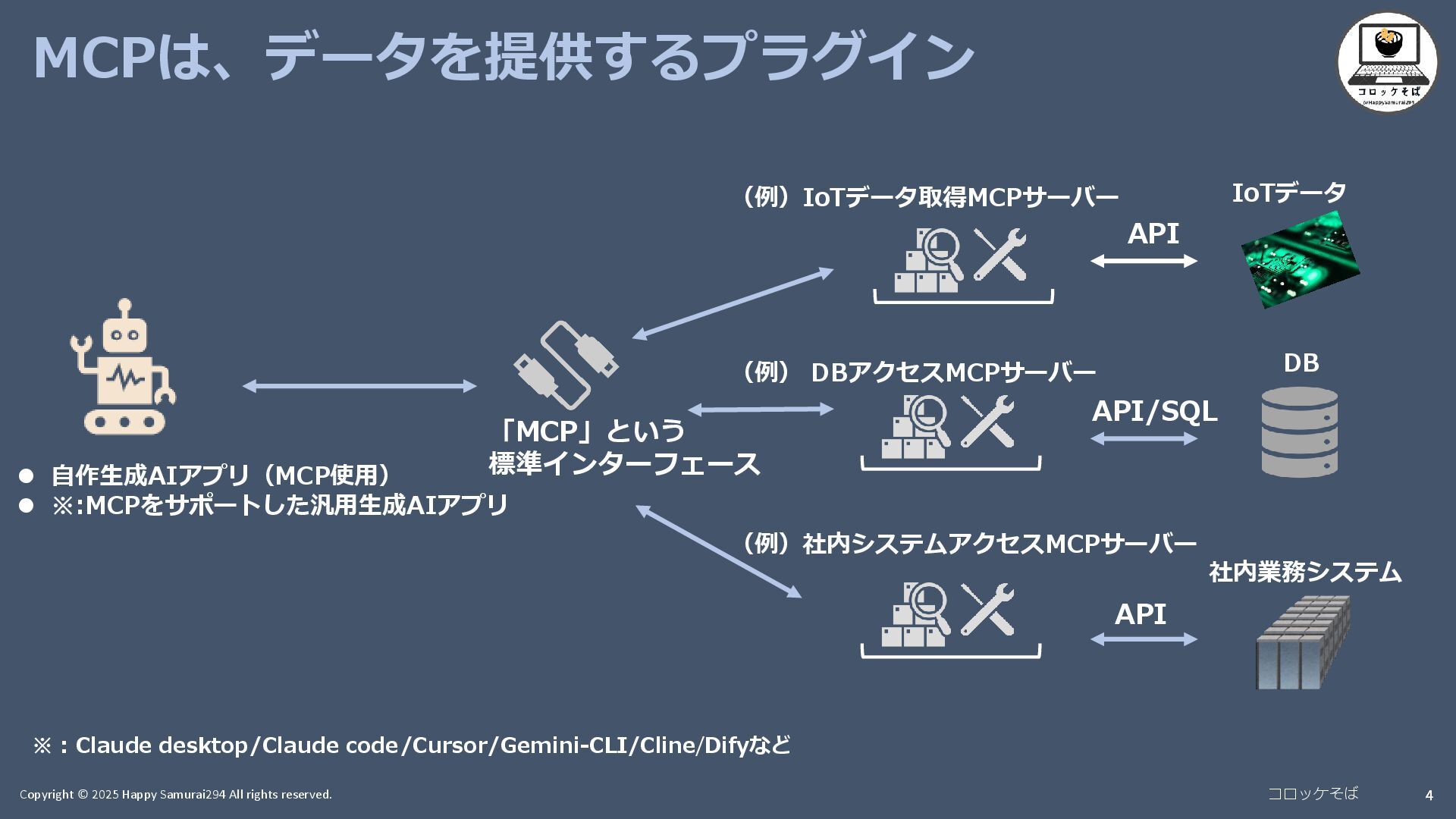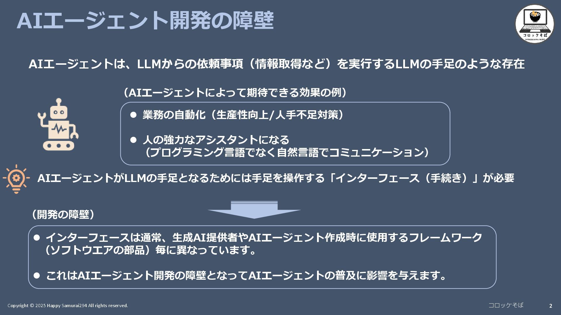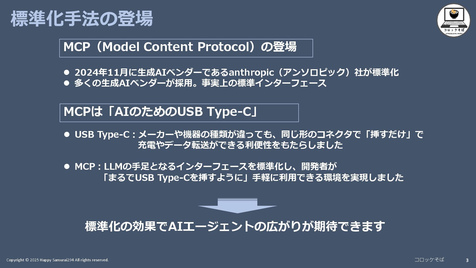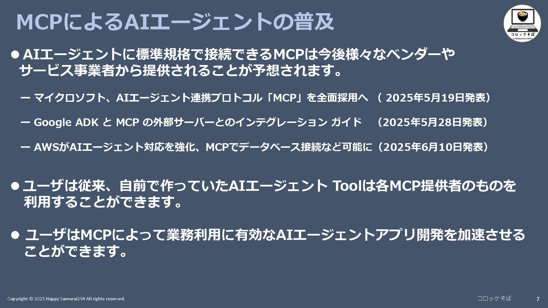 コロッケそば (@HappySamurai294) AIエージェントの利用を広げるMCP
